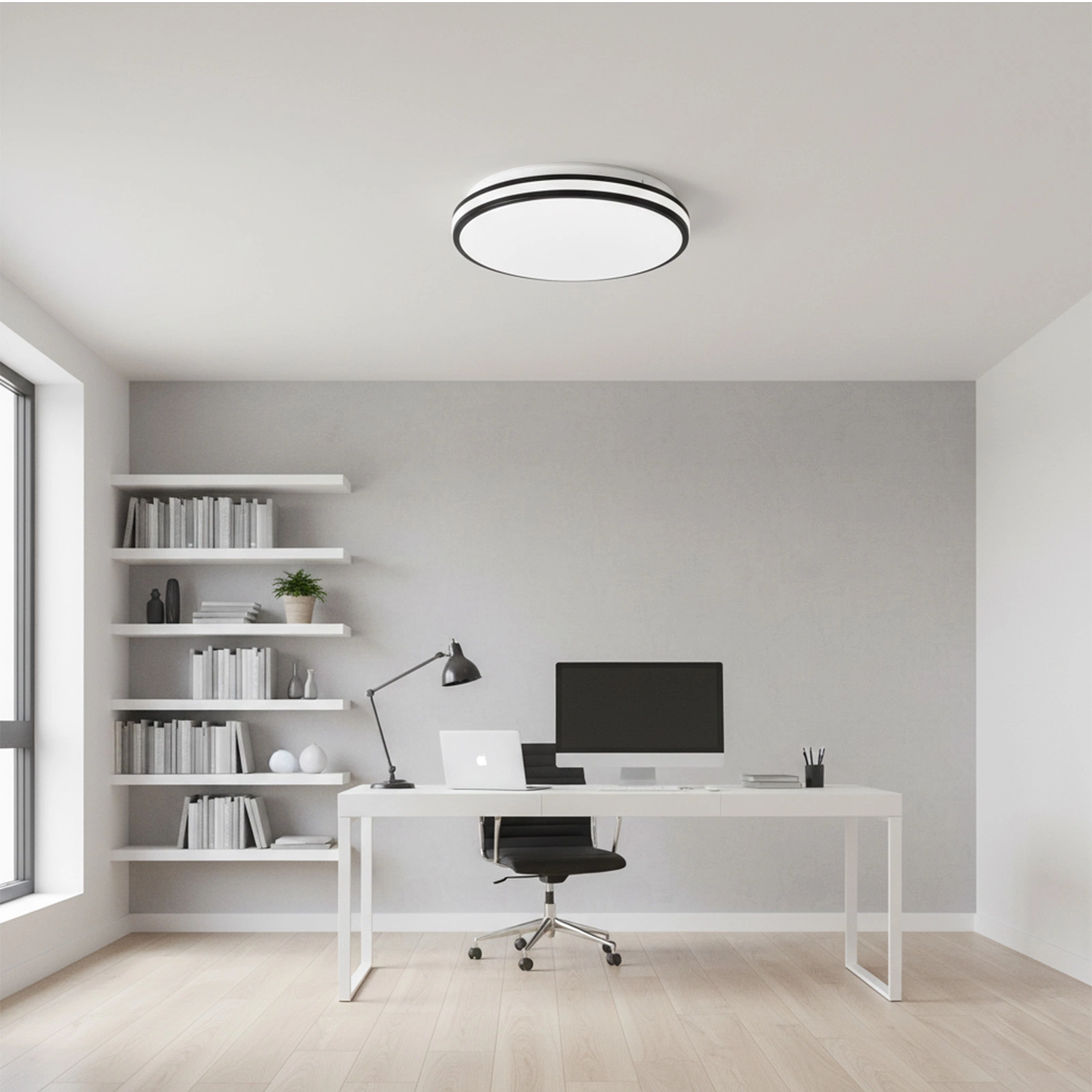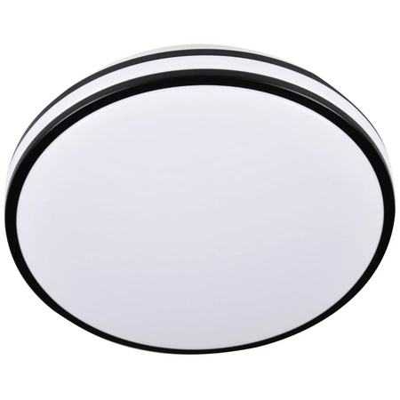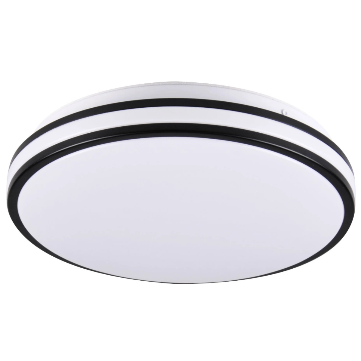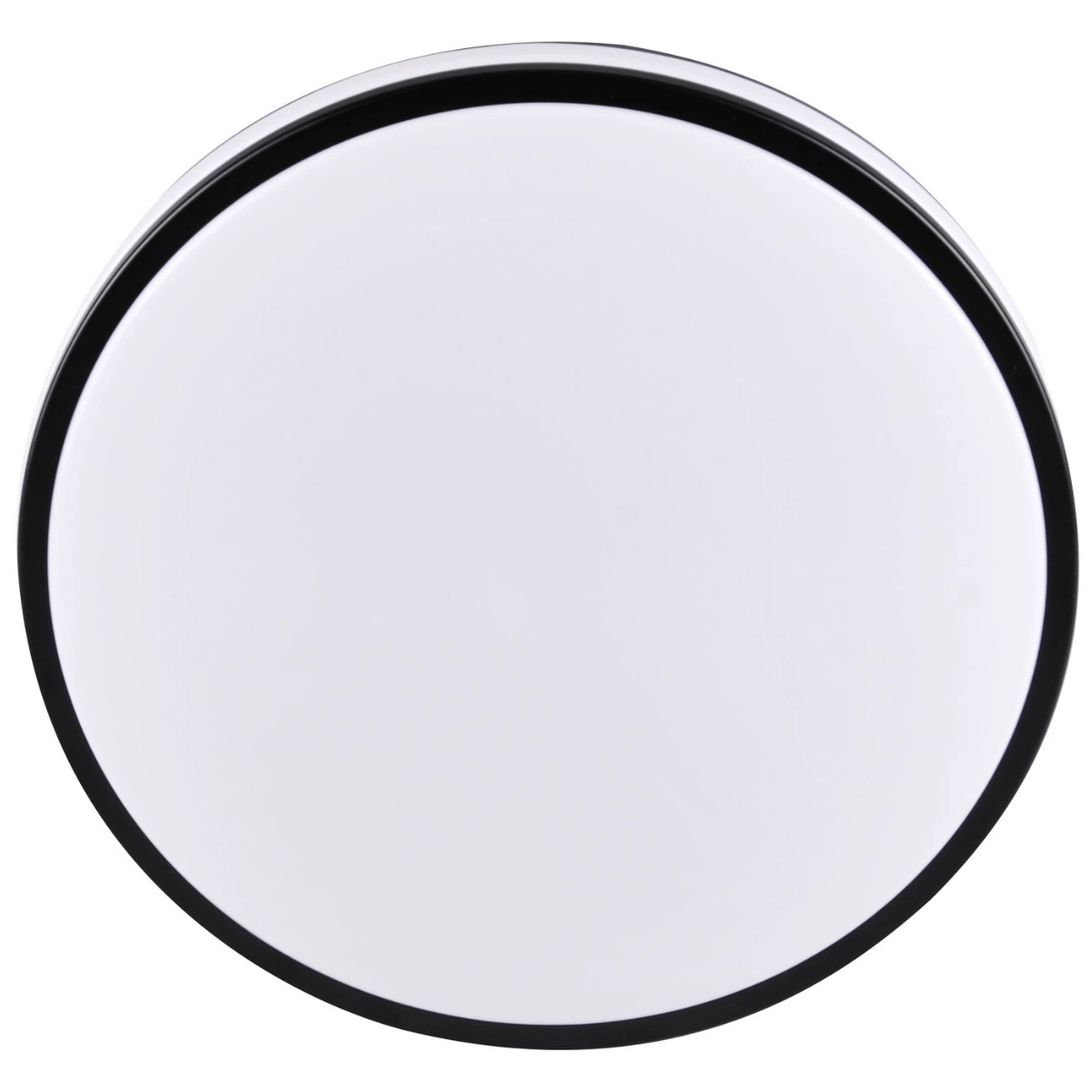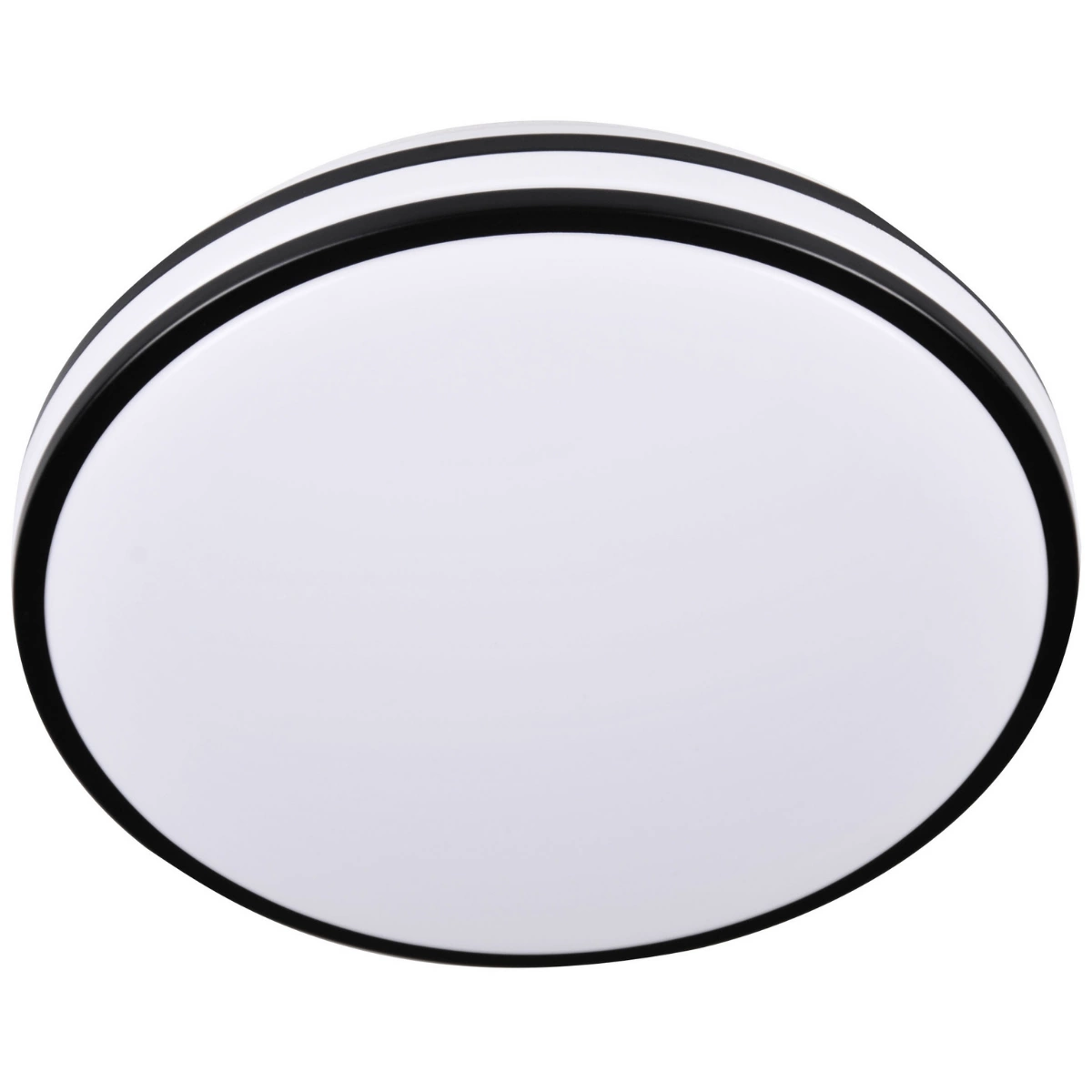 Eine moderne LED ORBIT Deckenleuchte mit einem Durchmesser von 40 cm von GOLDLUX (ehemals POLUX) in Schwarz mit einer hocheffizienten, energiesparenden LED- Lichtquelle mit einer Leistung von 24 W und einem Lichtstrom von 2600 lm. Der opale Kunststoffschirm verteilt das Licht gleichmäßig, ohne zu blenden.