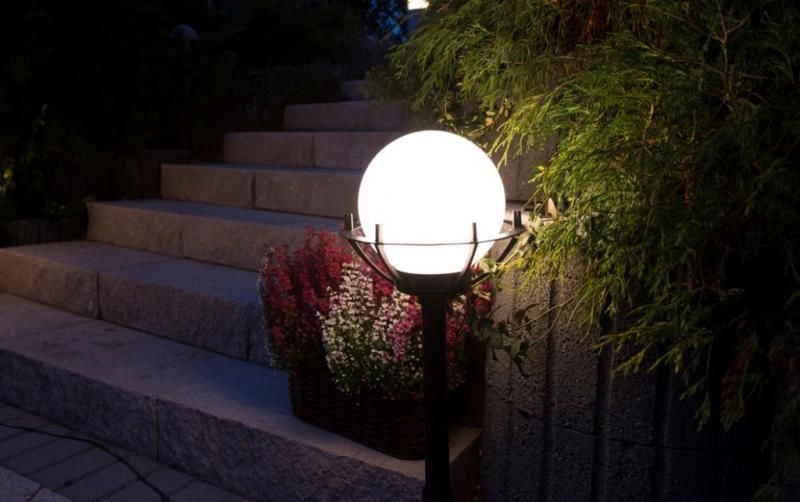 - Gehwegbeleuchtung – die Installation einer Lampe entlang des Gehwegs oder Gartenwegs ist eine sehr interessante Lösung, die für eine gute Beleuchtung sorgt und eine einzigartige Atmosphäre schafft.