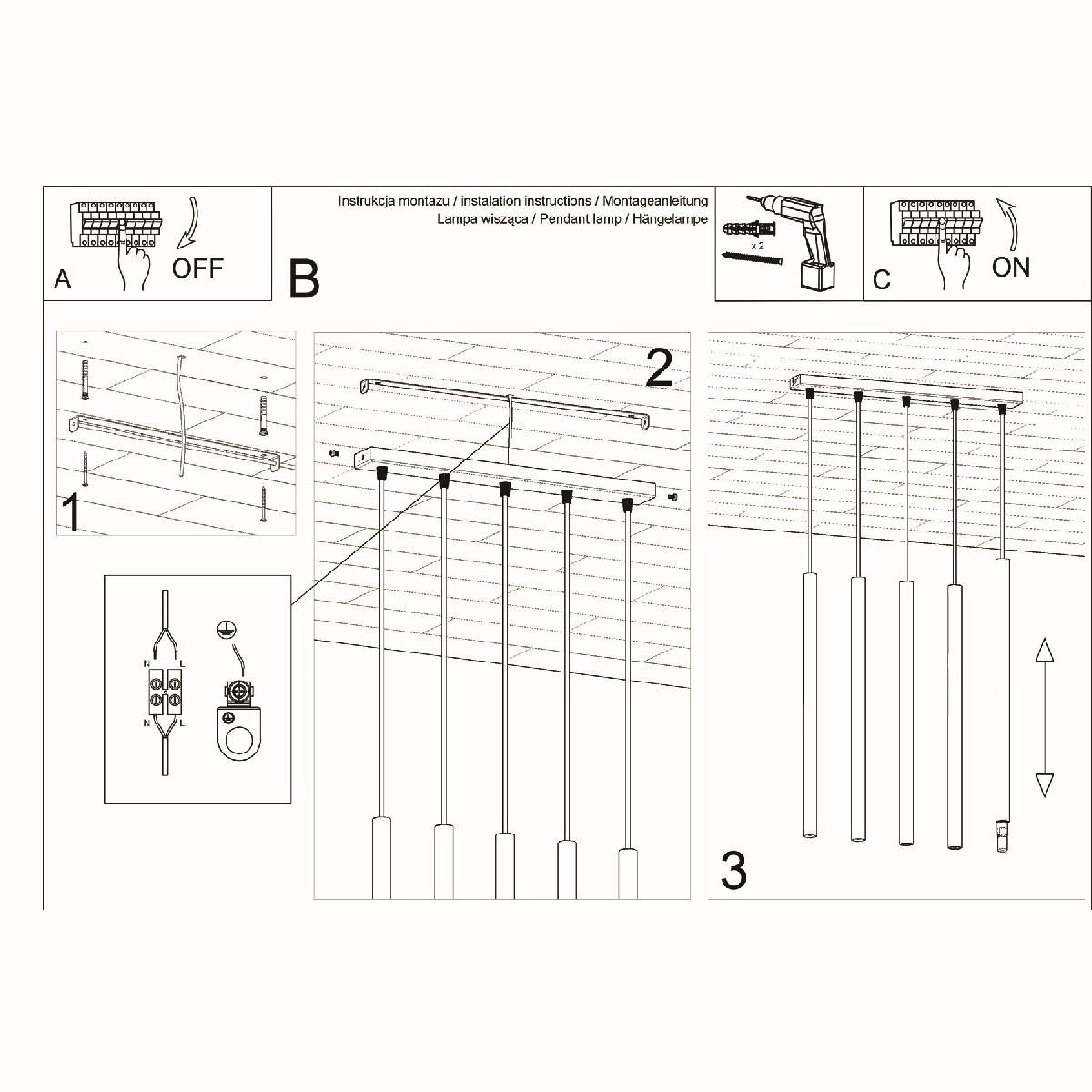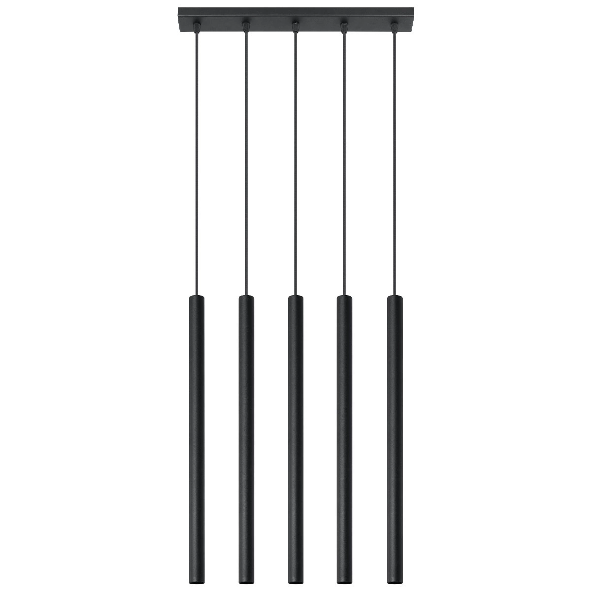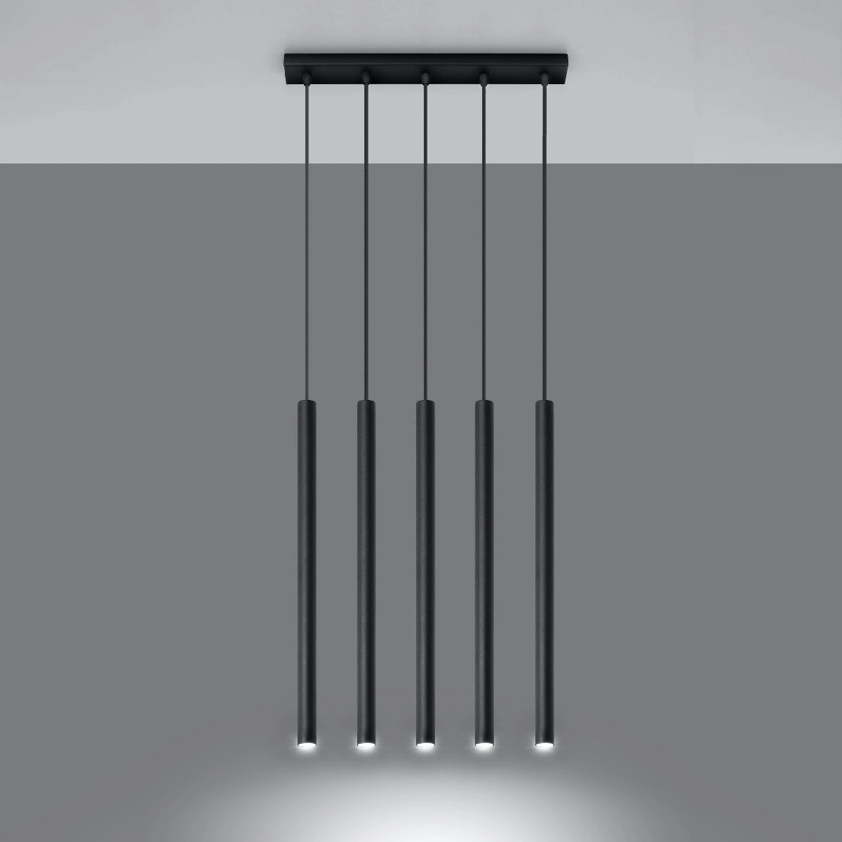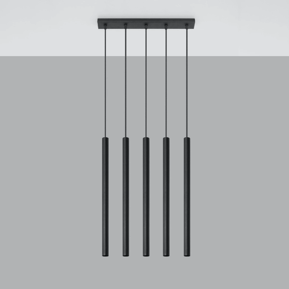 Die moderne Tubular Pendelleuchte in Schwarz fügt sich perfekt in minimalistische Innenräume ein und bietet gleichzeitig außergewöhnliche Funktionalität und Eleganz. Das Set aus fünf Leuchtröhren wurde präzise entworfen, um eine optimale Lichtstreuung zu gewährleisten. Jedes Rohr ist mit G9-Glühbirnen kompatibel, um auch große Räume effektiv zu beleuchten.