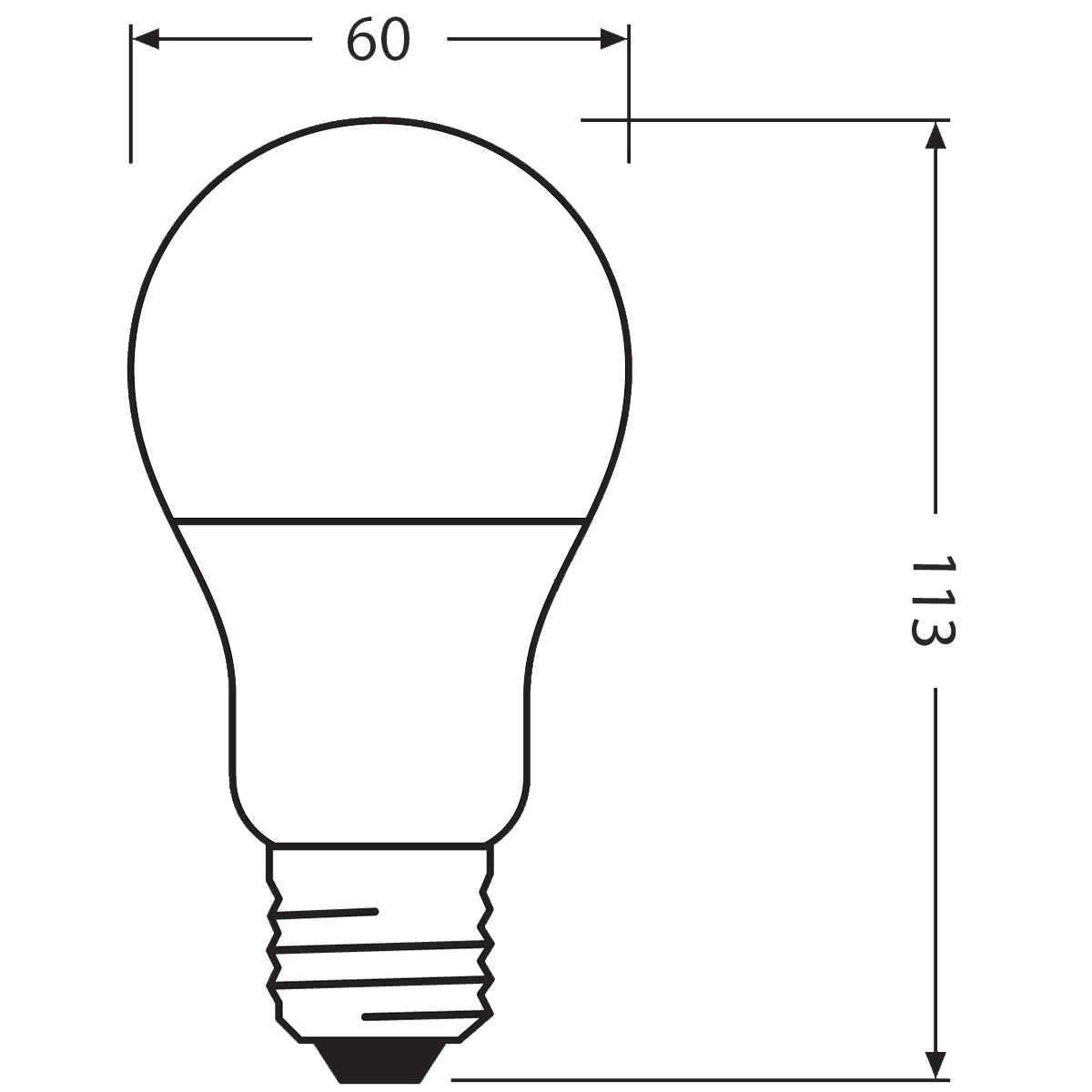 Die LED- Lampe der VALUE CLASSIC A-Serie der bekannten und in der Beleuchtungsbranche geschätzten Marke LEDVANCE mit einem E27-Sockel, eingeschlossen in einer A60- Glühbirne , ist eine hochwertige Lichtquelle mit einer Leistung von 10 W (entspricht einem klassischen Halogen mit einer Leistung von 750 W). ), einer warmen Farbe von 2700 K und einem Lichtstrom von 1055 lm. Es wurde mit modernen Lösungen unter Einsatz innovativer LED-Technologie hergestellt und zeichnet sich durch hohe Lichteffizienz, originalgetreue Wiedergabe der Farben beleuchteter Objekte und außergewöhnlich lange Haltbarkeit aus.
