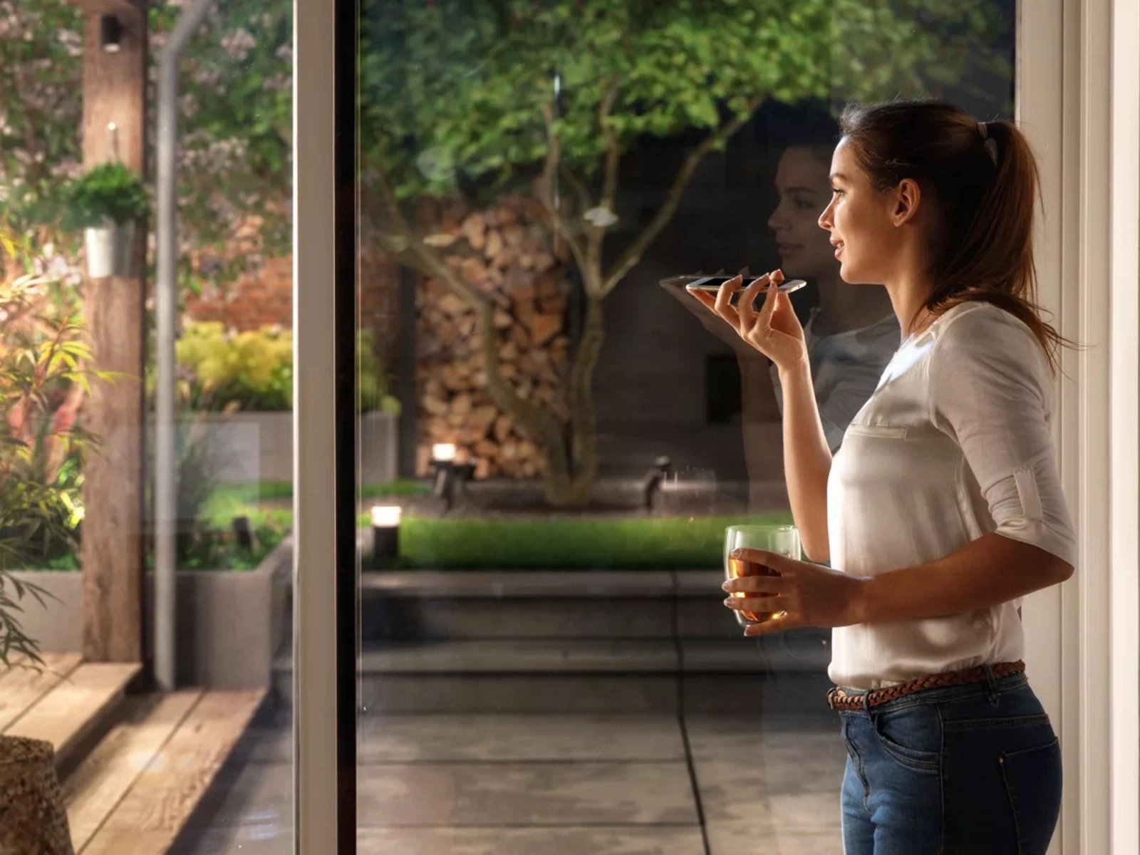 - Verbinden Sie Ihre Gartenlampen mit der Philips Hue-Brücke und steuern Sie Ihre Beleuchtung aus der Ferne (über eine mobile Anwendung, tragbare Lichtsteuerungen und -regler oder per Sprache).