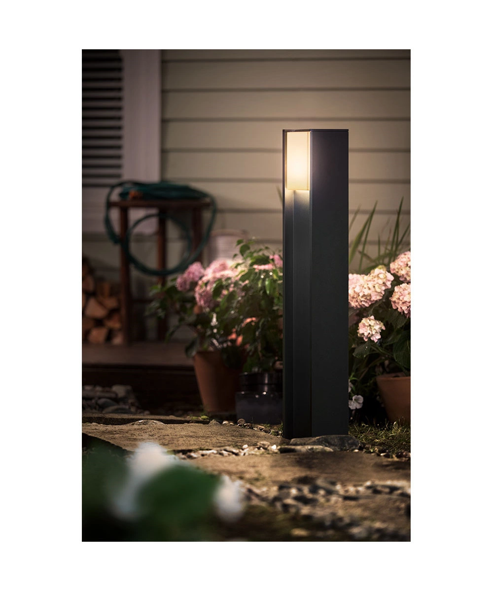 Philips Hue Outdoor ist eine lang erwartete Serie von Gartenprodukten, die vom internationalen Marktführer in der LED-Beleuchtungsbranche entwickelt wurde. Intelligente Beleuchtungssysteme gibt es jetzt auch in Ihrem Garten. Die Standlaterne aus der Turaco- Serie lässt sich im Außenbereich in allen Bereichen wie Balkon oder Terrasse erfolgreich einsetzen und macht dank ihrer soliden Bauweise und Widerstandsfähigkeit gegen schädliche Witterungseinflüsse auch in jedem Garten eine gute Figur. Sorgen Sie für die Sicherheit Ihres Zuhauses, schaffen Sie die perfekte Stimmung, genießen Sie diese schöne und vielseitige Beleuchtung und nutzen Sie die Vorteile von Philips Hue auf einfache und bequeme Weise.