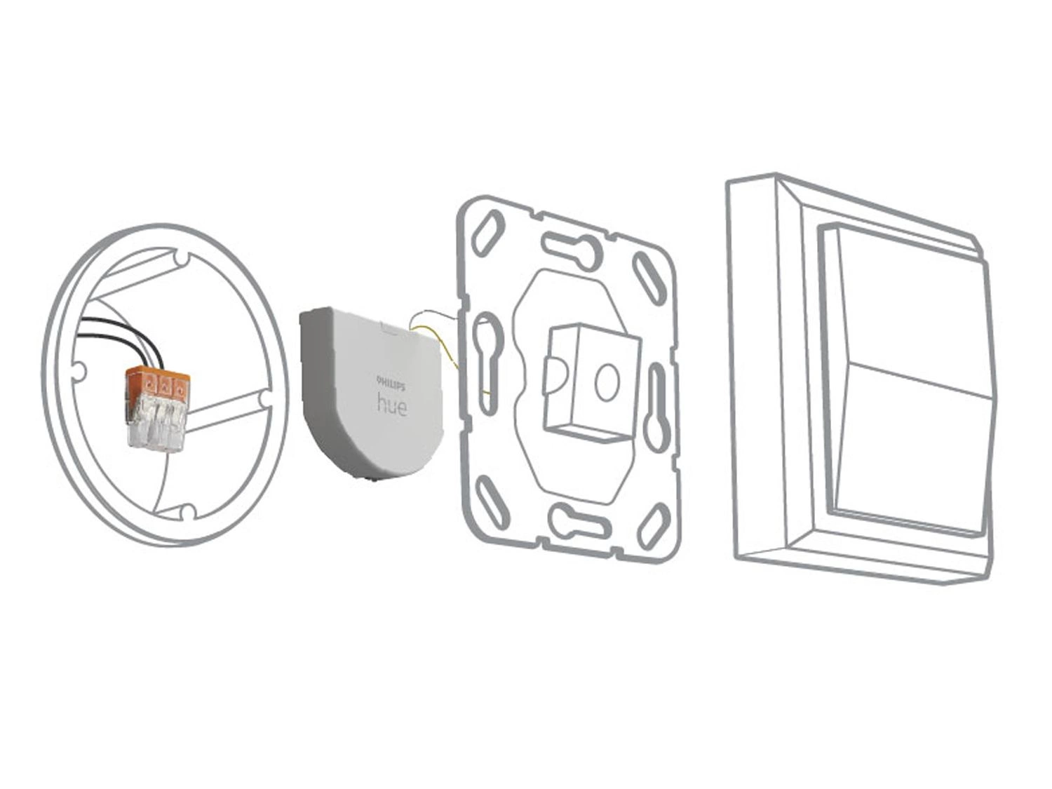 Wandschalter in der Beleuchtungsindustrie bekannt und respektiert Philips ermöglicht die Steuerung des gesamten intelligenten Systems über Lichtschalter im Haus. Alles, was Sie tun müssen, ist einen speziellen Schalter für sie zu installieren Philips Hue (Einbau in eine Wanddose, hinter einem normalen Lichtschalter). Ihre Hue-Leuchten sind jederzeit eingesteckt und verfügbar, um ihre bevorzugten Lichtarrangements einzurichten, sowohl für eine ausgewählte Lampe als auch für einen ganzen Raum oder eine Hue-Zone. Dank des Wandschaltermoduls sind die Leuchten immer mit dem Stromnetz verbunden. Sobald der Schalter mit den ausgewählten Lichtquellen konfiguriert ist, kann er in der Hue-App bedient werden - so können Sie zwischen drei Beleuchtungsanordnungen wechseln, ein- und ausschalten. Philips Hue-Wandschaltermodul erfordert Hue Bridge (separat erhältlich). Mit der Hue Bridge können Sie außerdem bis zu 50 Lichtquellen und 12 Zubehörteile in Ihrem Haus hinzufügen, Zeitschaltuhren und Routinen erstellen und Ihre Beleuchtung von überall aus steuern - innerhalb und außerhalb Ihres Hauses