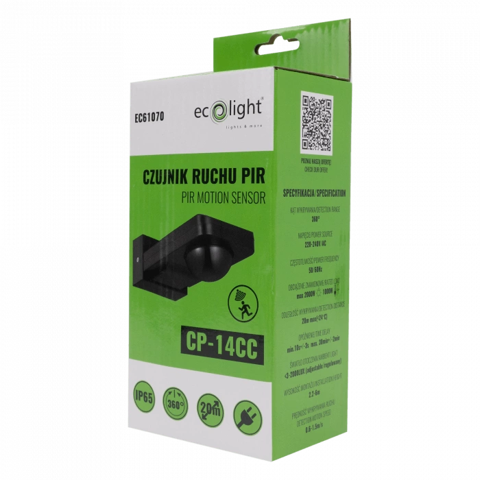 Werfen Sie einen Blick auf den hochmodernen Bewegungs- und Dämmerungssensor von Ecolight, der eine Revolution in Sachen Sicherheit und Komfort für jede Immobilie darstellt. Dieses elegante schwarze Gerät sieht nicht nur gut aus, sondern bietet auch unvergleichliche Funktionalität mit einem Detektor, der eine Reichweite von bis zu 20 Metern und einen 360-Grad-Winkel hat. Egal, ob Sie ihn draußen oder drinnen anbringen, der Sensor erkennt jede Bewegung genau und gibt Ihnen Sicherheit.