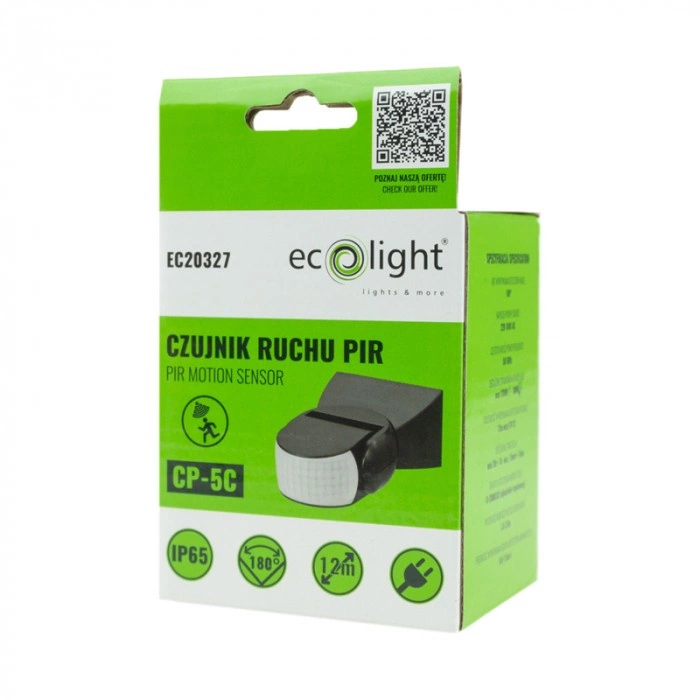 Bereichern Sie Ihre Umgebung mit dem fortschrittlichen PIR-Bewegungs- und Dämmerungssensor von CP Ecolight, der Zuverlässigkeit und modernes Design vereint. Er ist ideal für den Außen- und Innenbereich und bietet dank seines großen Erfassungswinkels von 180° und seiner Reichweite von 12 Metern eine präzise Beleuchtungssteuerung. Das Gerät wird mit 220-240 V Wechselstrom betrieben und unterstützt Lasten bis zu 300 W, was es zur perfekten Wahl für jede Anwendung macht. Mit einer einstellbaren Umgebungslichtempfindlichkeit von 3 bis 2.000 LUX und einer Betriebszeiteinstellung von 10 Sekunden bis 15 Minuten können Sie den Betrieb des Sensors an Ihre individuellen Bedürfnisse anpassen.