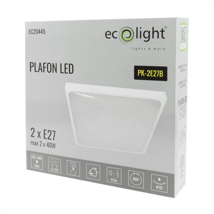 Entdecken Sie Modernität und Eleganz mit der LED Plafond Surface Mounted Ceiling Lamp 2x E27 von Ecolight. Diese quadratische Deckenleuchte kombiniert außergewöhnliches Design mit Funktionalität und ist damit die perfekte Beleuchtungslösung für jedes Interieur. Mit ihrer dezenten weißen Farbgebung und dem milchigen Schirm fügt sie sich dezent in ihre Umgebung ein und spendet gleichzeitig helles und angenehmes Licht. Die Leuchte wurde für den Einsatz in Räumen wie Fluren, Treppenhäusern, Esszimmern, Wohnzimmern und Küchen konzipiert und fügt sich perfekt in die moderne Innenarchitektur ein.