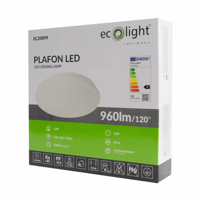 - Energieeffizienz: Der 12-W-LED-Plafond verbraucht nur wenig Energie und spart dadurch Beleuchtungskosten.