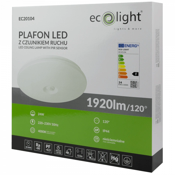 Entdecken Sie moderne Beleuchtung mit dem LED Plafon von ECO LIGHT, das nicht nur durch sein elegantes Design, sondern auch durch seine intelligenten Funktionen besticht. 24W Leistung sorgen für einen beeindruckenden Lichtstrom von 1920lm und schaffen dank des neutralweißen Lichts mit einer Temperatur von 4000K eine angenehme Atmosphäre. Ein zusätzlicher PIR-Sensor mit einem Erfassungswinkel von 120° reagiert automatisch auf Bewegung, spart Energie und sorgt für Komfort.