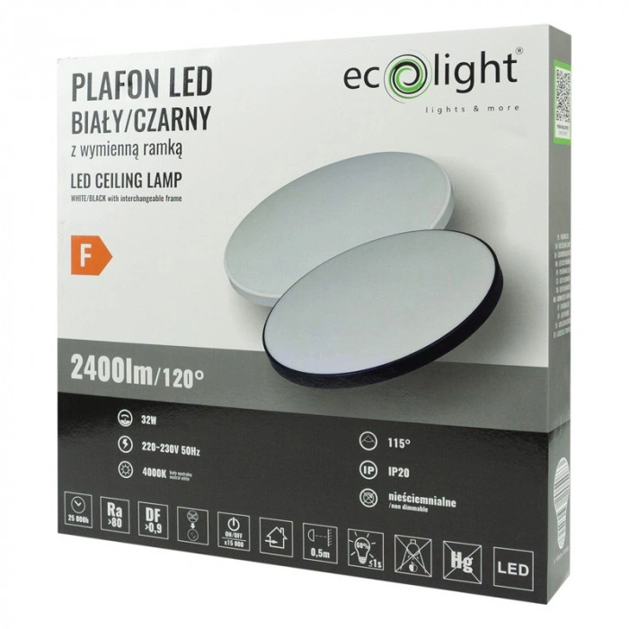 Plafond LED-Deckenleuchte 32W 2400lm 4000K Neutral mit austauschbarem schwarzen oder weißen Rahmen Ecolight