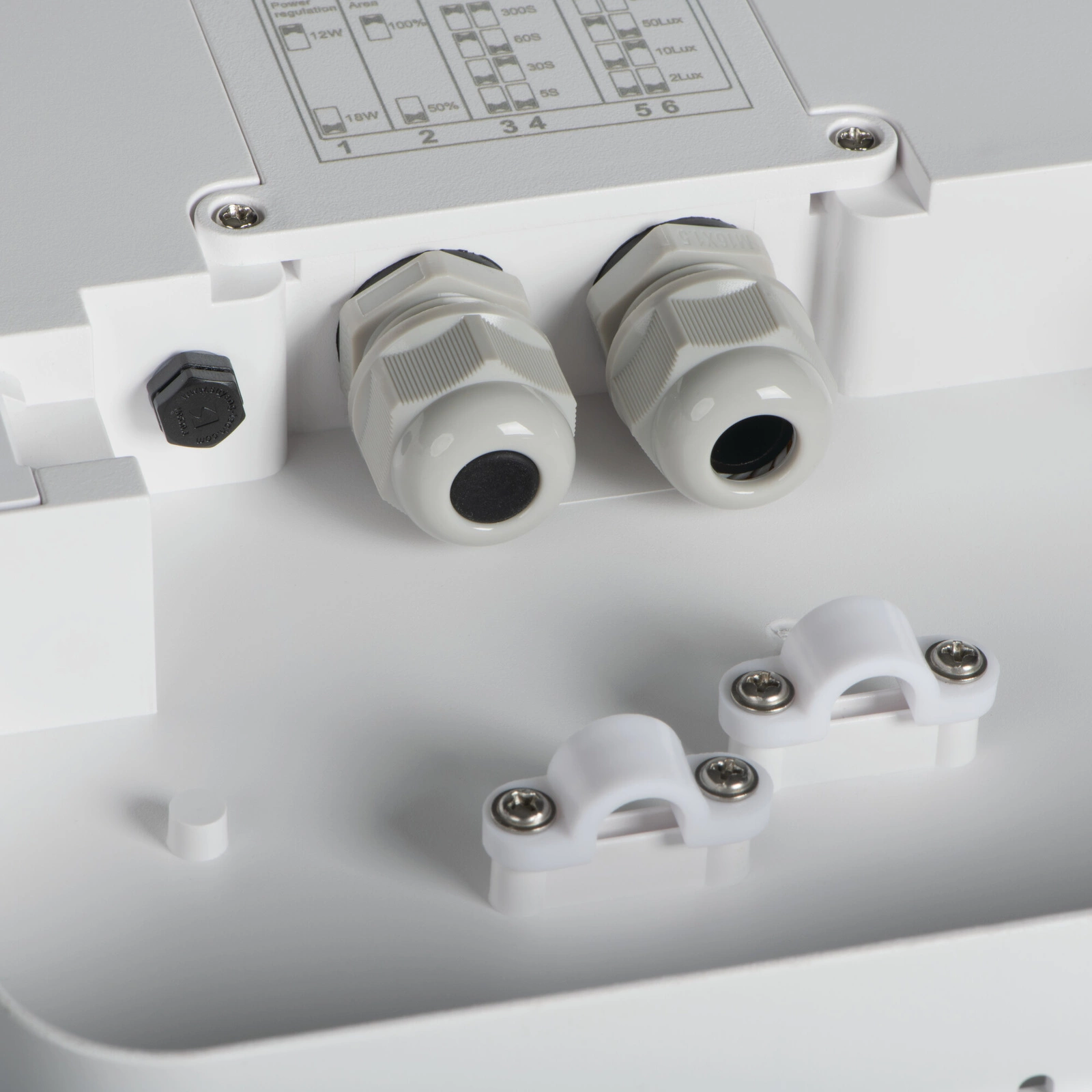 Die robuste Polycarbonat-Konstruktion garantiert Langlebigkeit und Widerstandsfähigkeit, was durch die Dichtheitsklasse IP65 und eine Lebensdauer von bis zu 50.000 Stunden bestätigt wird. Der verwendete Bewegungssensor mit großer Reichweite erhöht den Benutzerkomfort, indem er die Beleuchtung automatisch ein- und ausschaltet.