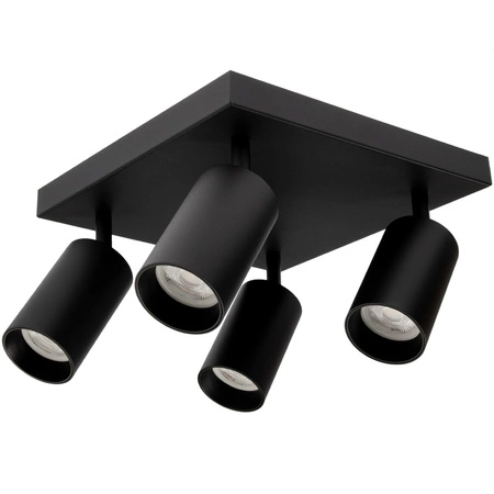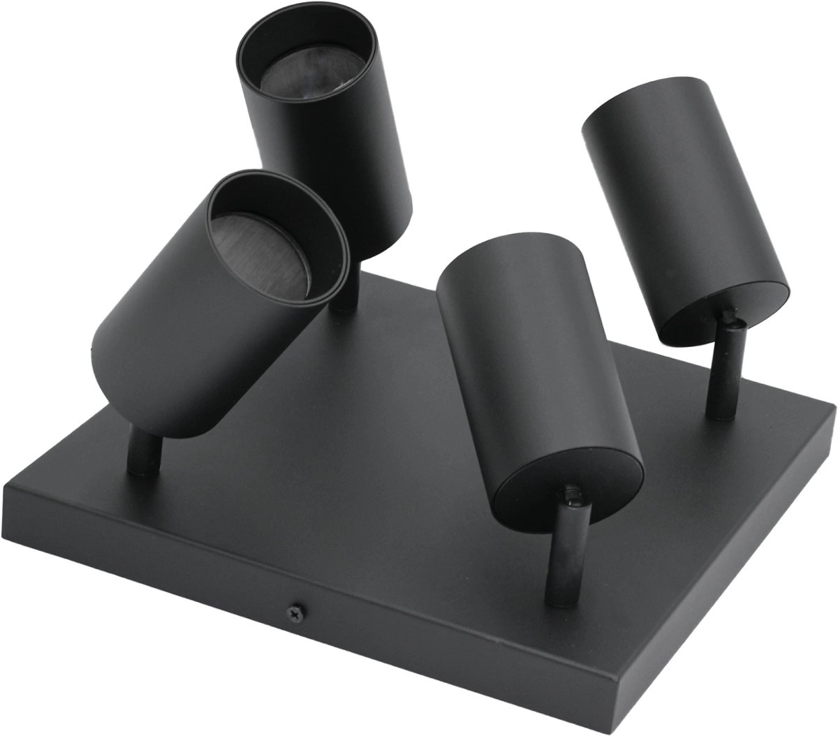 Deckenleuchte, Wandleuchte der QUALIS-Serie mit vier Lichtpunkten, mattschwarz, aus hochwertigem Aluminium. Die Wandleuchte ist für Leuchtmittel mit einer maximalen Leistung von 50 W und einem GU10-Sockel ausgelegt. Deckenstrahler dienen der dekorativen Beleuchtung von Räumen; dank des verstellbaren Reflektors können wir das Licht an die richtige Stelle lenken. Der Reflektor ist mit einem Sockel ausgestattet - GU10-Gewinde. Der Vorteil einer Lampe mit austauschbarer Lichtquelle besteht in der Möglichkeit, eine Glühbirne mit einer Lichtfarbe auszuwählen, die unseren Bedürfnissen entspricht (die maximale Leistung der Glühbirne darf 50 W nicht überschreiten).