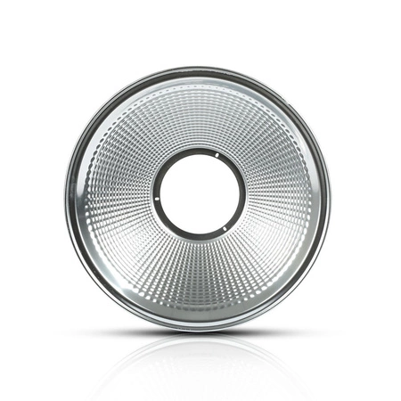 Reflektor mit glatter Oberfläche für die V -TAC High-Bay Leuchte . Der Lichtverteilungswinkel beträgt 90° . Die Farbe des Reflektors ist Silber . Der Reflektor für LED-Leuchten besteht aus hochwertigem Aluminium .