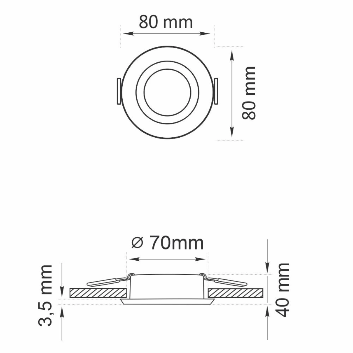 Einbauleuchte aus der BORAS- Serie des renommierten und anerkannten Unternehmens GOLDLUX (Polux) mit MR16- Sockel . Die Leuchte besteht aus einer hochwertigen Aluminiumlegierung und garantiert eine hohe Dichtheit – Schutzart IP44 , wodurch die Lampe in Räumen mit hoher Luftfeuchtigkeit, wie einem Badezimmer oder einer Küche, installiert werden kann.