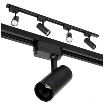 AusverkauftBeleuchtungsschienen-Set 2m Schiene + 4 xGU10 schwarze LED-Schienenstrahler mit dekorativem Ring