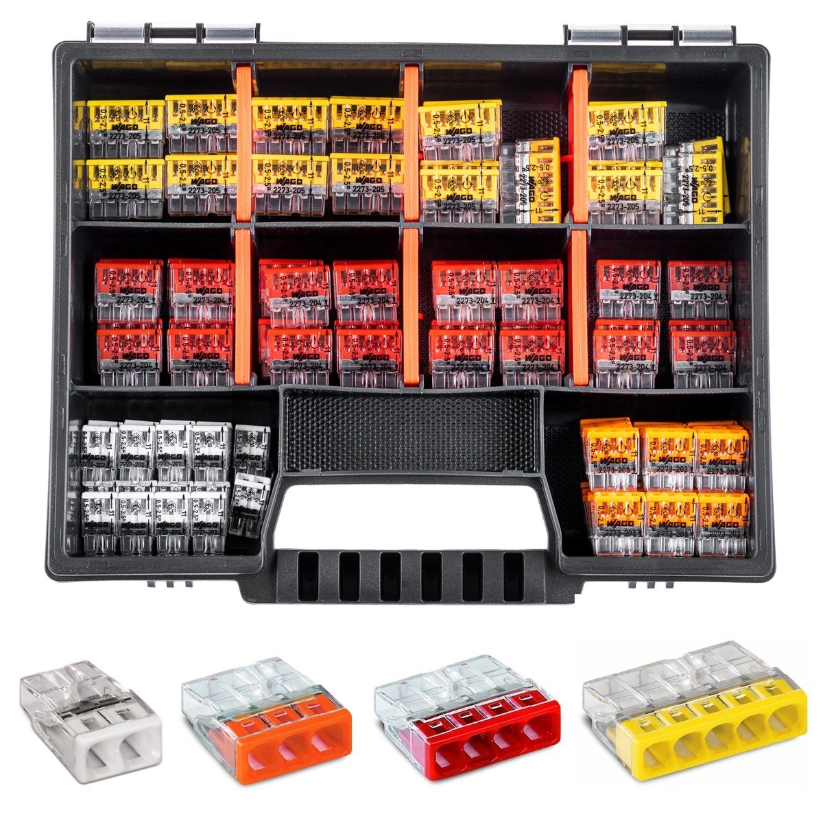 Set NOR8 Organizer-Koffer + WAGO-Installationsverbinder 20x 2X2,5MM + 30x 3X2,5MM + 30x 4X2,5MM + 20x 5X2,5M