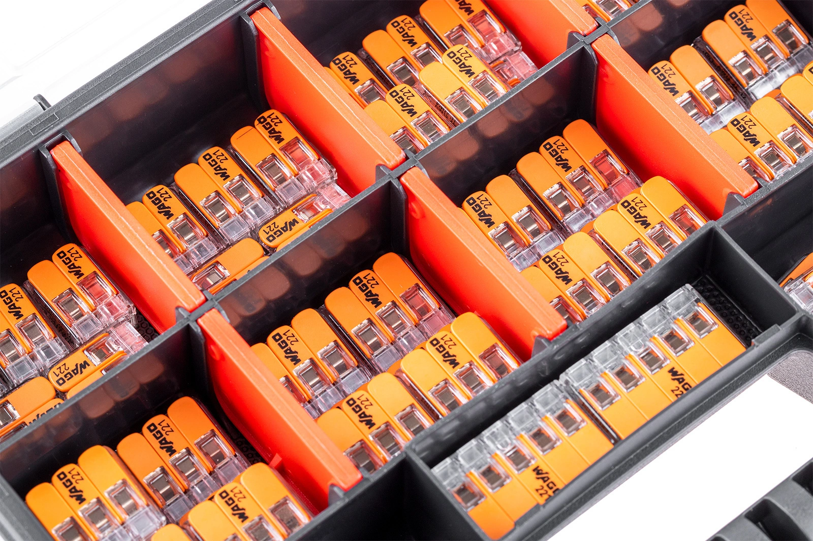 Set: NOR8 Koffer Organizer + WAGO Installationsverbinder 25x 2x4mm + 25x 3x4mm + 10x 5x4mm