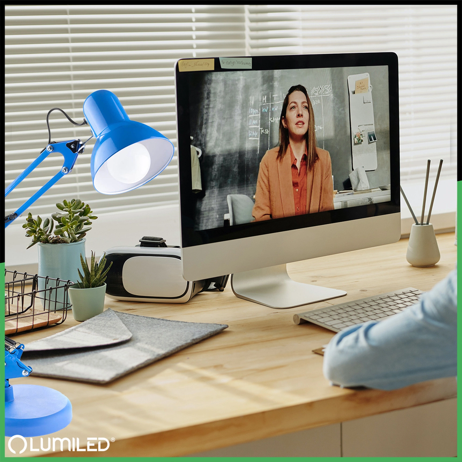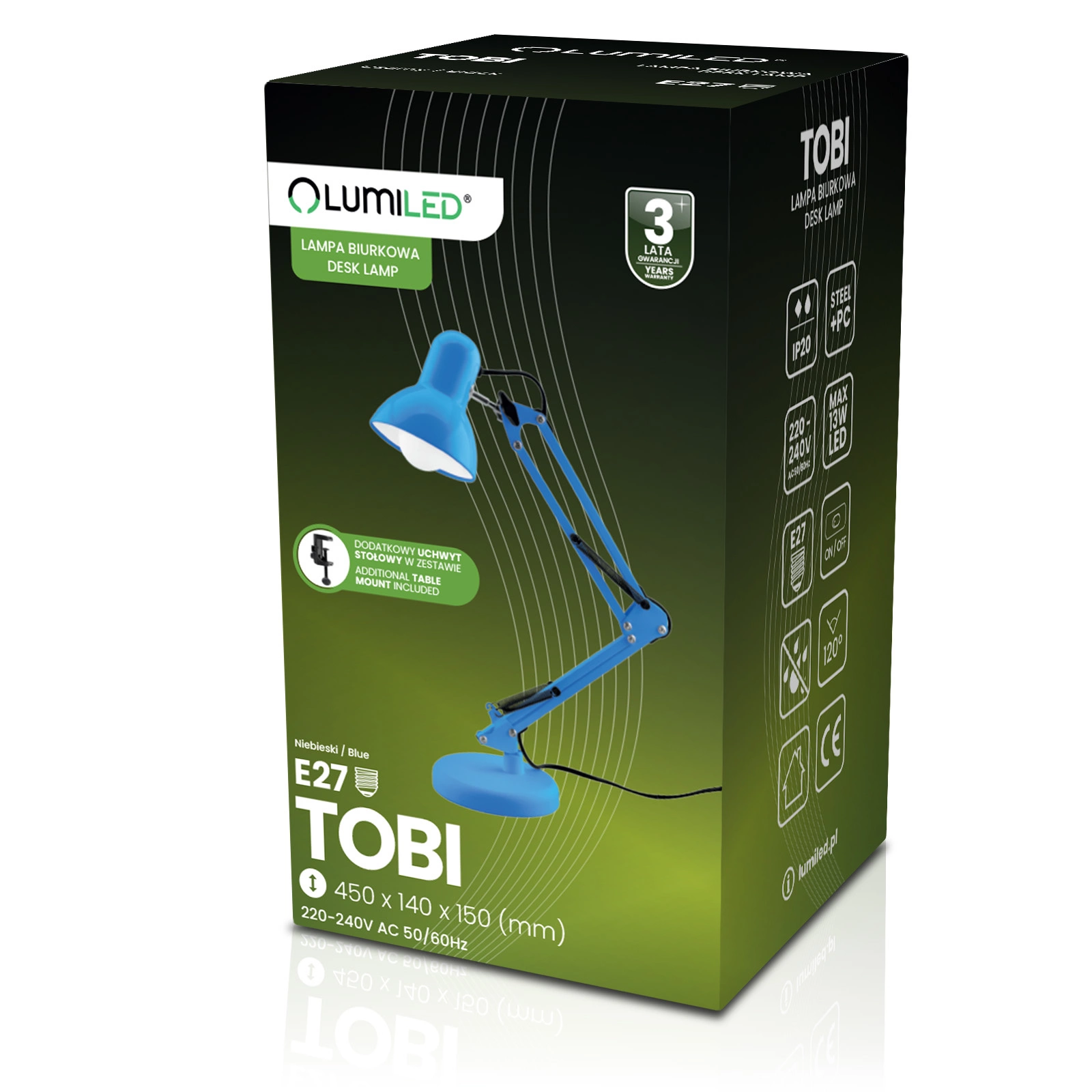 E27 TOBI Drafting Desk Lamp Blau + Lumiled-Tischhalterung