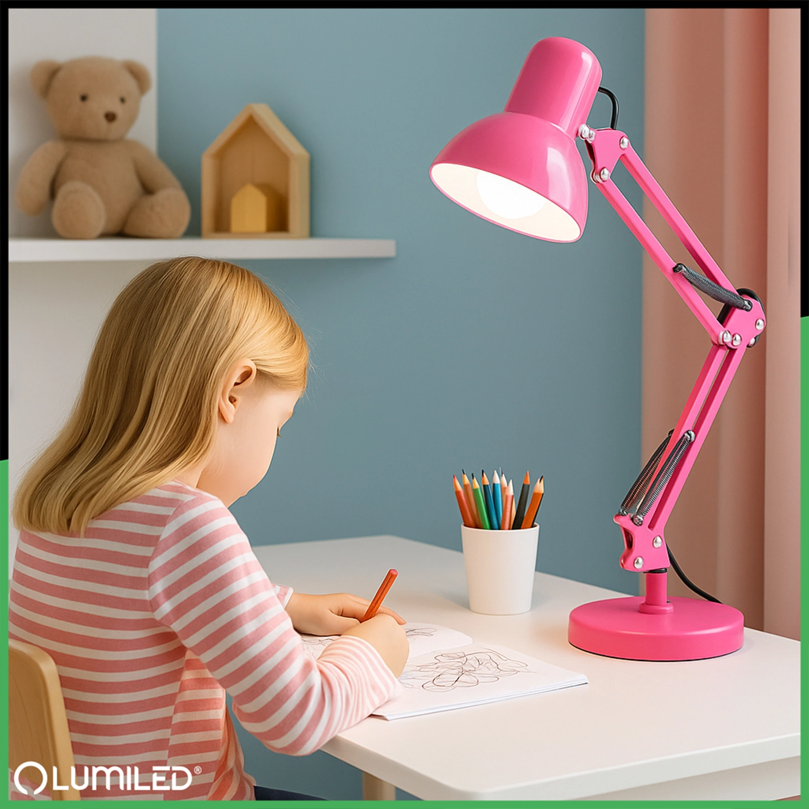 E27 TOBI Drawing Schreibtischlampe Rosa + Lumiled-Tischhalterung