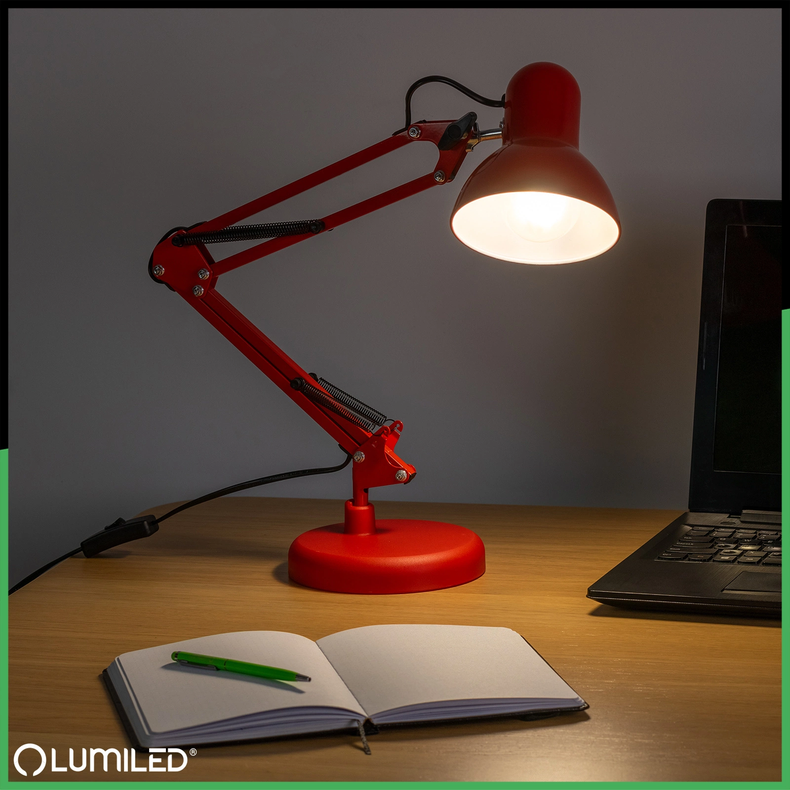 E27 TOBI Drawing Schreibtischlampe Rot + Lumiled Tischhalterung