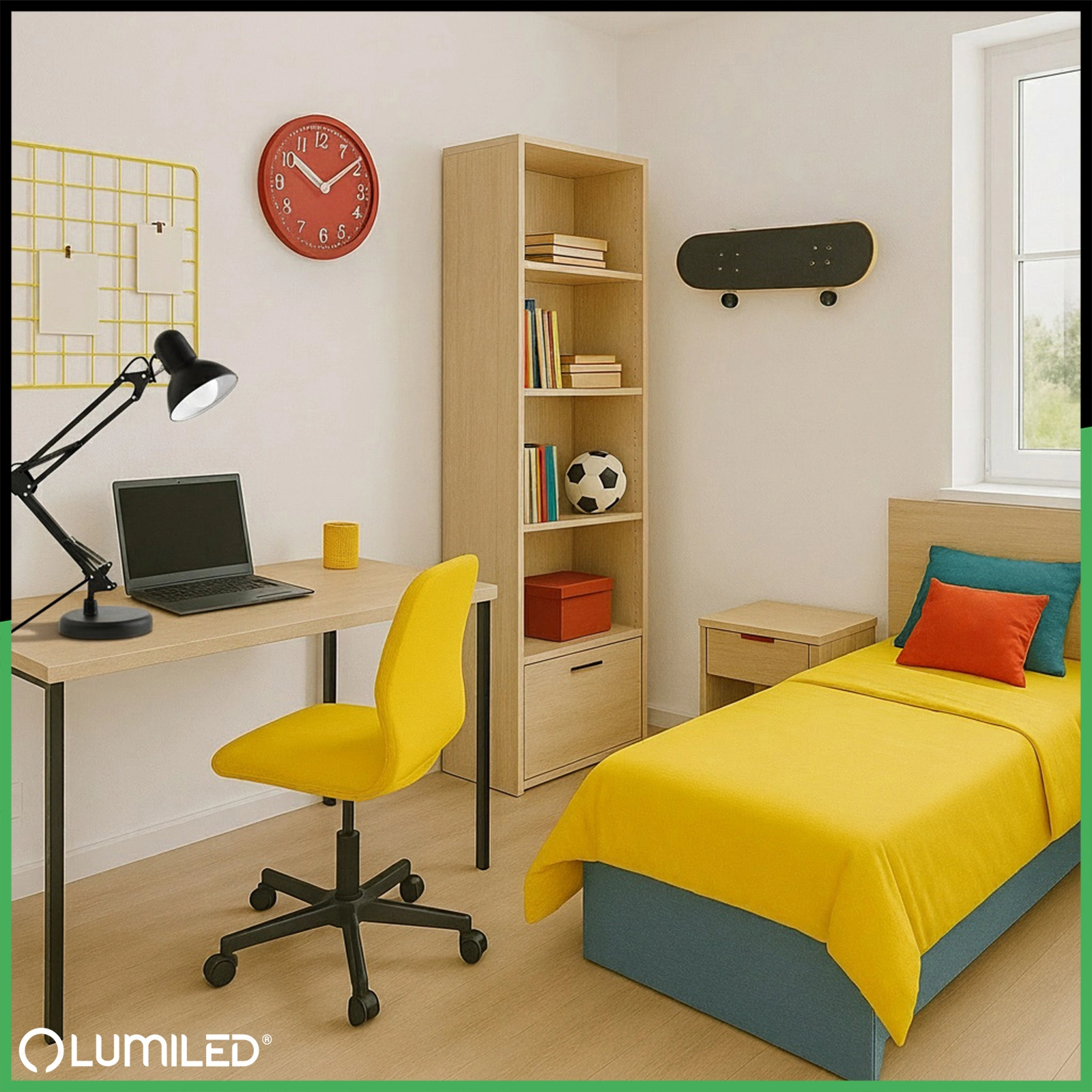Dank des biegsamen, beweglichen Arms dieser Zeichenleuchte, mit dem sich jeder Neigungswinkel einstellen lässt, können wir den Winkel des einfallenden Lichts anpassen und so den Arbeitsplatz am Schreibtisch besser ausleuchten. Die Schreibtischleuchte TOBI ist mit einem klassischen E27-Gewinde ausgestattet, das den Einbau der gängigsten Glühbirnen in verschiedenen Farben ermöglicht.