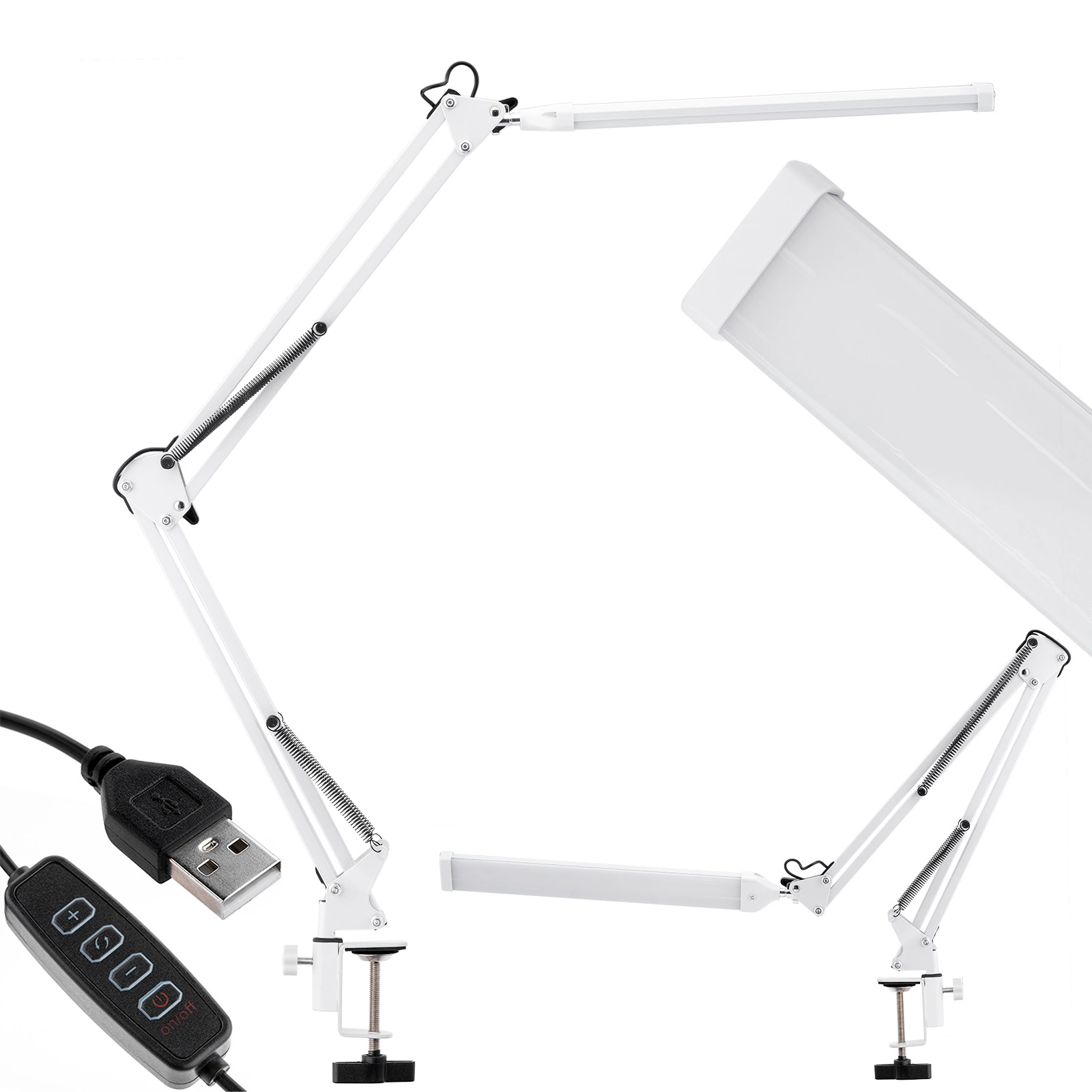 Schreibtischlampe LED 12W, Zeichentisch-Schreibtischlampe mit Tischklemme CCT USB Dimmbar Weiß COSMI LUMILE