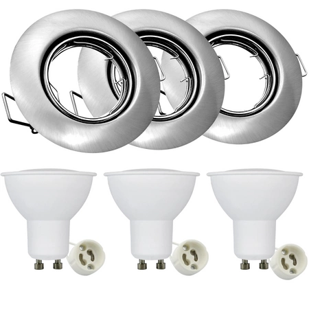 Set aus 3x beweglichen GOLDLUX-Halogenlampen, rund, Nickel + GU10-LED-Glühbirne 3,5W