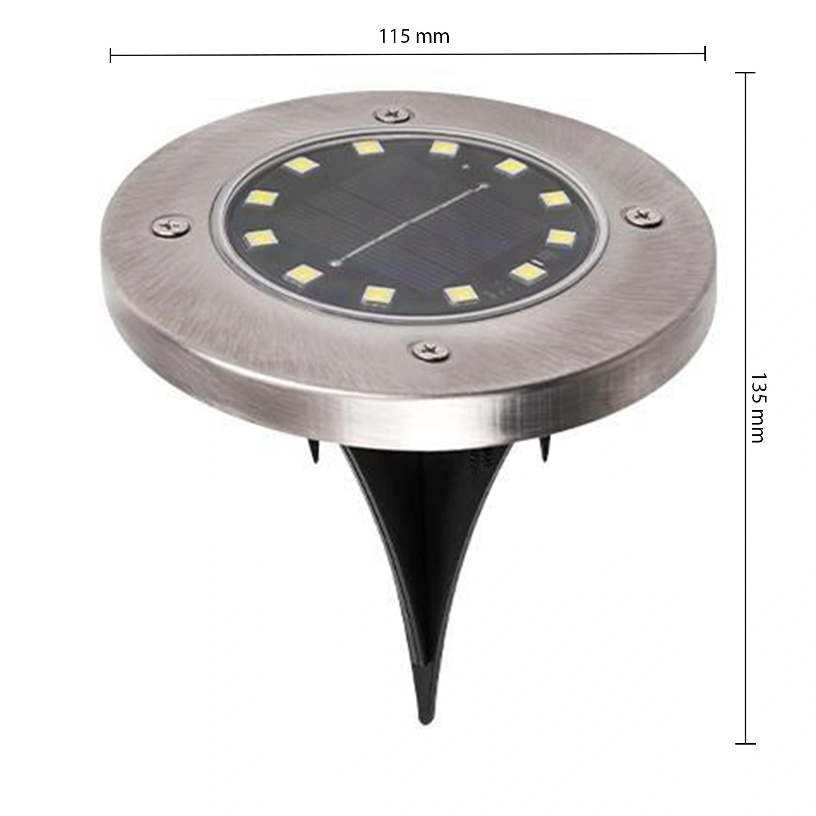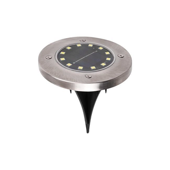 Ein Set aus 4 Solar-Spike-Lampen in satinierter Farbe dient als dekorative und praktische Beleuchtung für Ihren Garten. Es unterstreicht perfekt die Atmosphäre des Gartens und verleiht der Umgebung des Hauses dank des außergewöhnlichen Licht- und Schattenspiels eine einzigartige Atmosphäre.