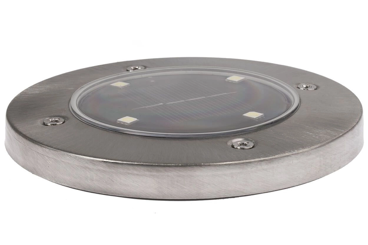 Ein Set aus 4 Solar-Spike-Lampen in satinierter Farbe dient als dekorative und praktische Beleuchtung für Ihren Garten. Es unterstreicht perfekt die Atmosphäre des Gartens und verleiht der Umgebung des Hauses dank des außergewöhnlichen Licht- und Schattenspiels eine einzigartige Atmosphäre.