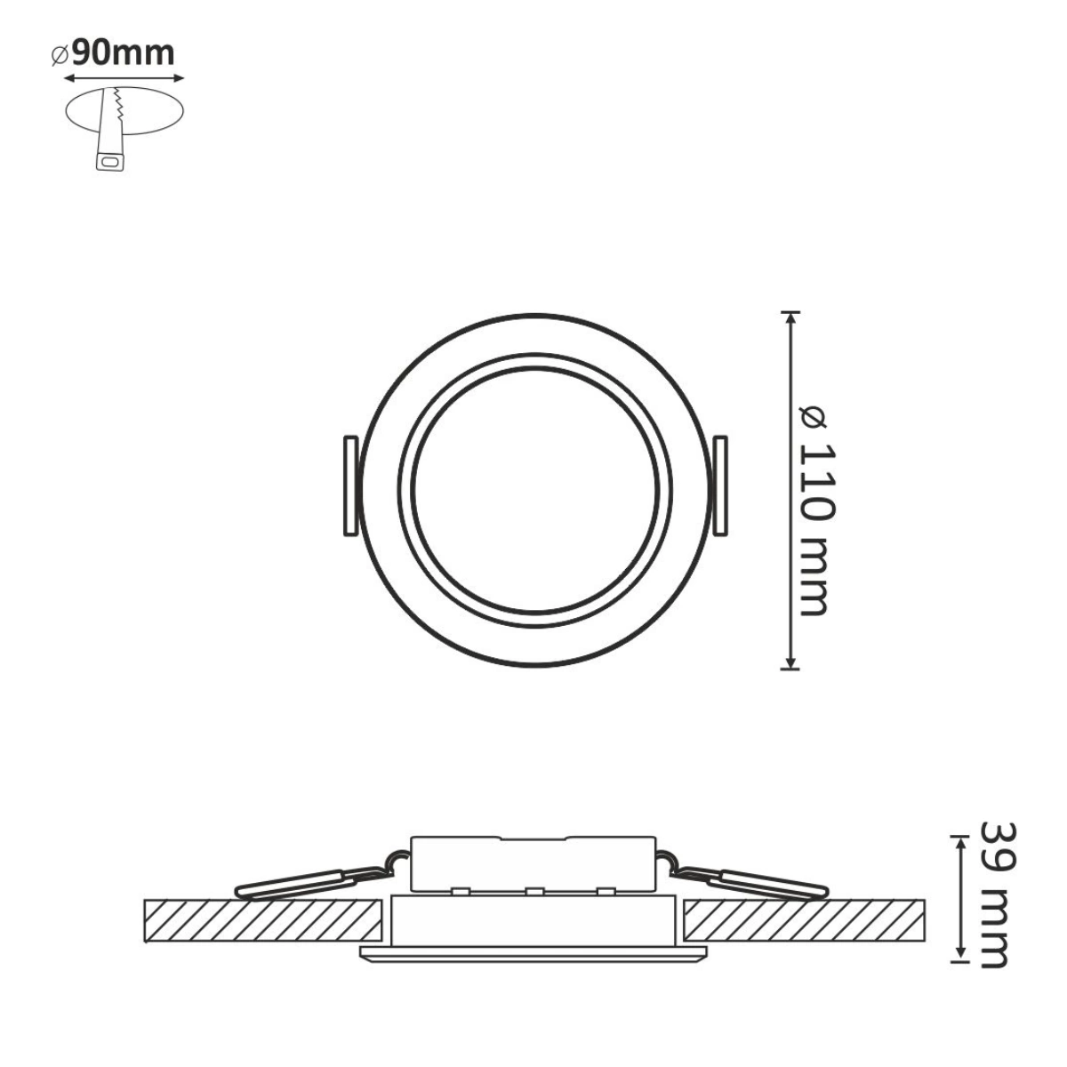 Set aus drei runden Einbauleuchten MIRO LED Weiß 6W 400lm 3000K GOLDLUX