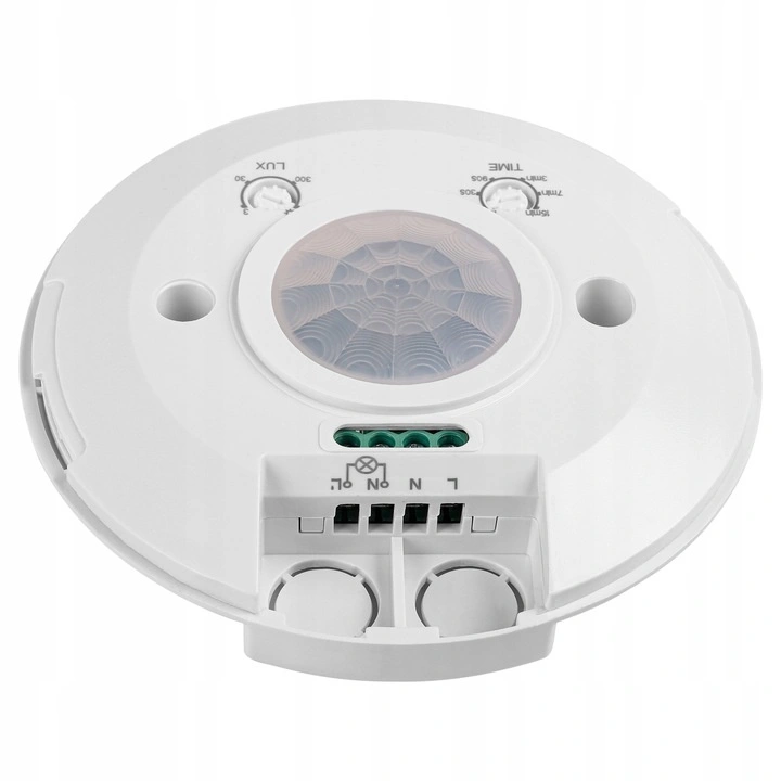 PIR-Bewegungssensor er besteht aus Kunststoff und ist ein moderner Unterputzmelder, der mit Hilfe von Infrarotstrahlung Bewegungen erkennt. Das Gerät ist mit praktischen Halterungen für den einfachen und sicheren Einbau in Zwischendecken ausgestattet. Der Sensor zeichnet sich durch einen einfachen Zugang zu den Einstellungen aus, die für die Einschaltzeit und die Empfindlichkeit der Lichtintensität des Empfängers verantwortlich sind, so dass es nicht notwendig ist, das Gerät zu zerlegen, um die Einstellungen zu ändern.