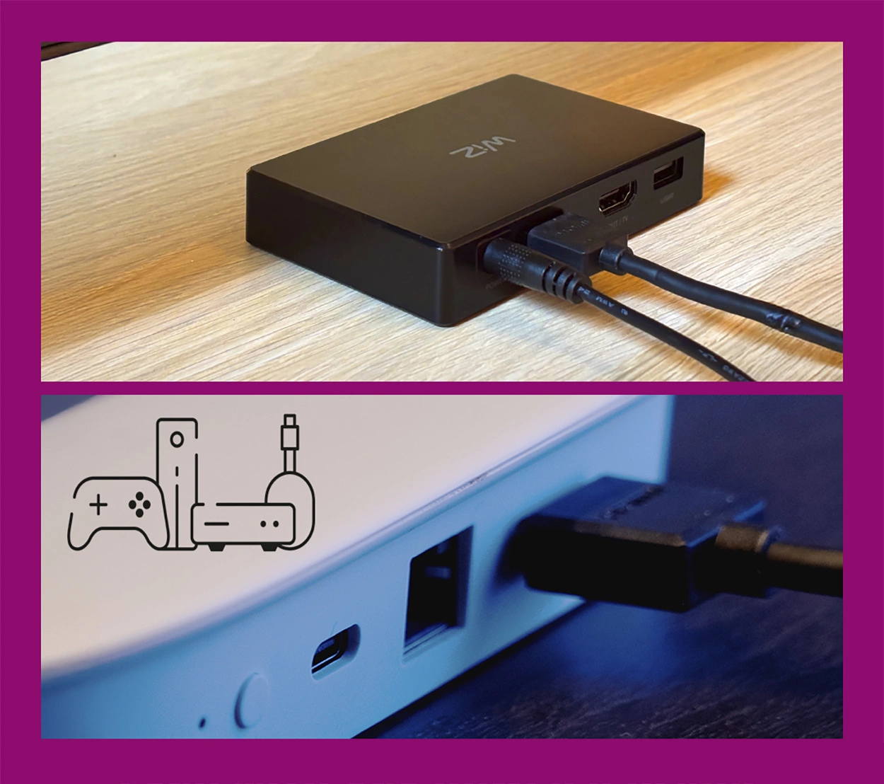 Schließen Sie die Sync Box einfach an ein Mediengerät mit HDMI-Anschluss an, z. B. ein Streaming-Gerät, eine Kabelbox oder eine Spielekonsole. Unterstützt 4K bei 60 Hz, HDR10+, Dolby Vision.