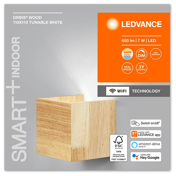 Wir präsentieren die smarte 7W LED-Wandleuchte mit 400 lm Lichtstrom, die moderne Technologie mit einem attraktiven gelben Design kombiniert. Ausgestattet mit Dimmfunktion und Einstellung der Lichtfarbe (CCT) über WiFi, können Sie die Beleuchtung an jede Situation anpassen, um Komfort und Bequemlichkeit zu gewährleisten. Das Produkt ist für die Innenmontage vorgesehen und besteht aus einem haltbaren Holzwerkstoff, der seine Langlebigkeit garantiert.