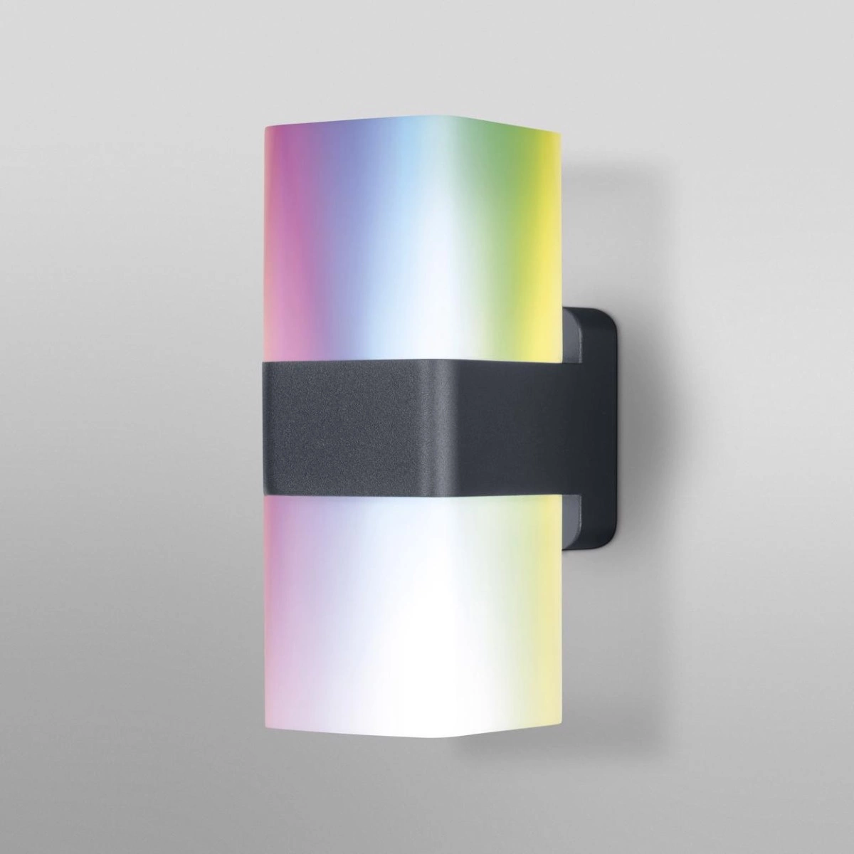 Die robuste Konstruktion aus grau eingefärbtem Aluminium zeichnet sich durch eine hohe Schutzart IP44 aus, die Widerstandsfähigkeit gegen widrige Wetterbedingungen garantiert. Die Wandleuchte ist für die Aufputzmontage geeignet und verfügt über eine integrierte WiFi SMART+ Funktion, die eine bequeme Steuerung über ein Smartphone ermöglicht. Das Produkt hat eine Lebensdauer von bis zu 25.000 Stunden und kann in einem breiten Temperaturbereich von -20...+40°C betrieben werden. Es ist die ideale Lösung für die Beleuchtung von Fassaden, Terrassen oder Gärten.