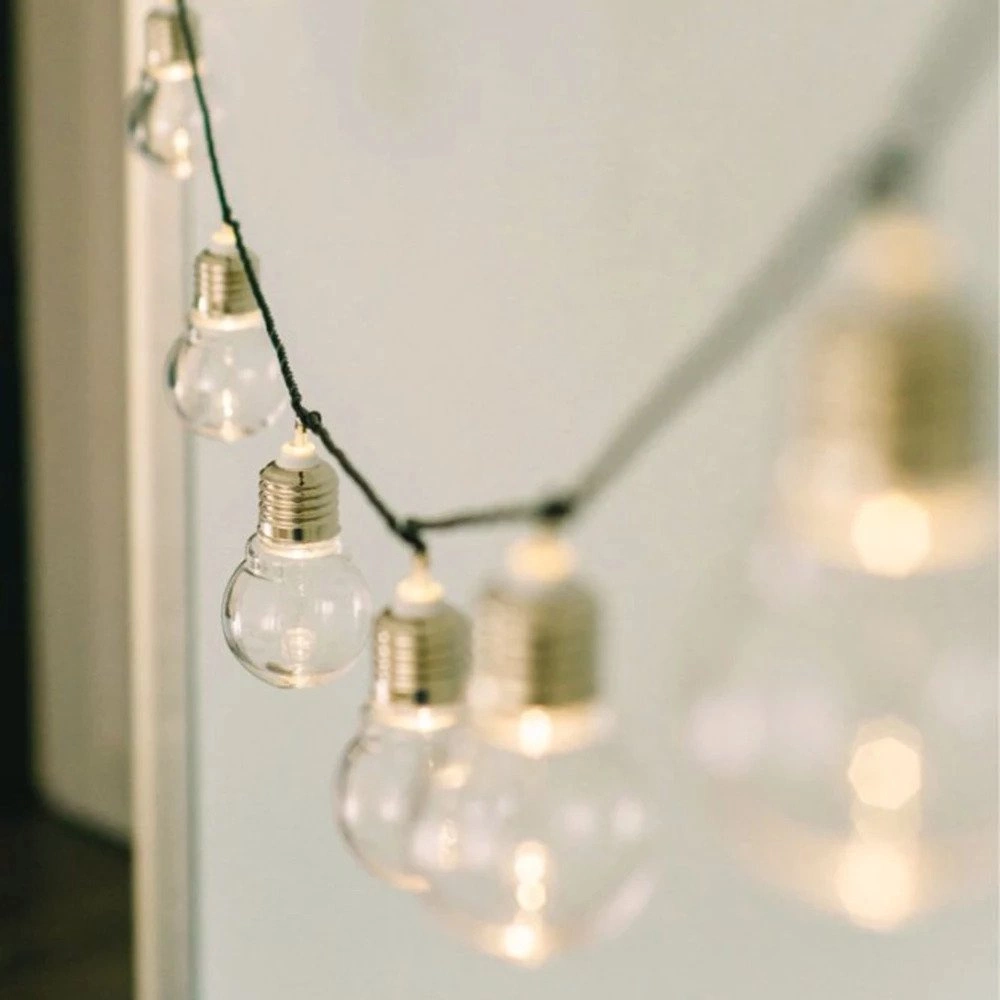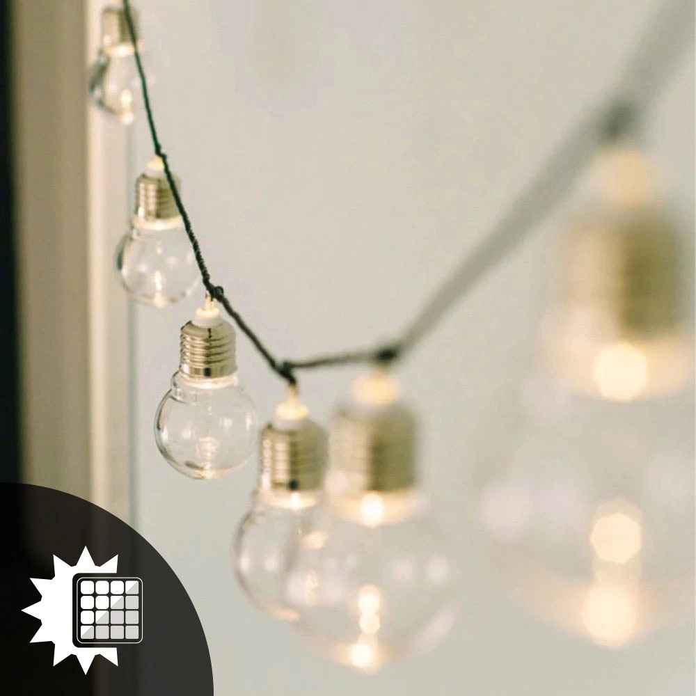 Eine Girlande , eine Solarkette mit 10 transparenten Glühbirnen im Retro-Stil, verwandelt unseren Garten, unser Haus und unsere Terrasse in ein Wunder.