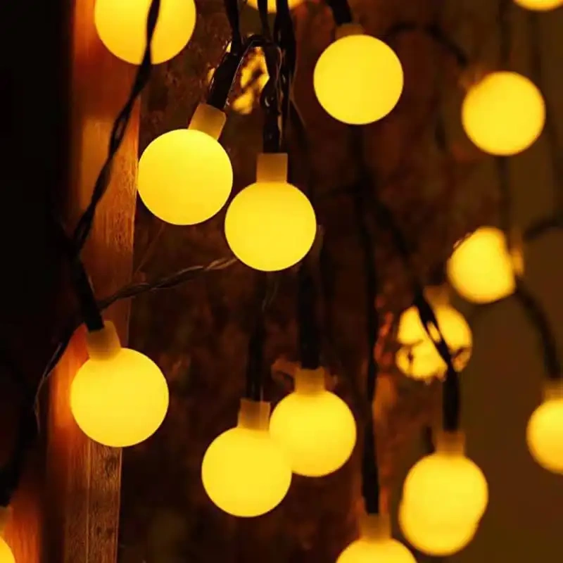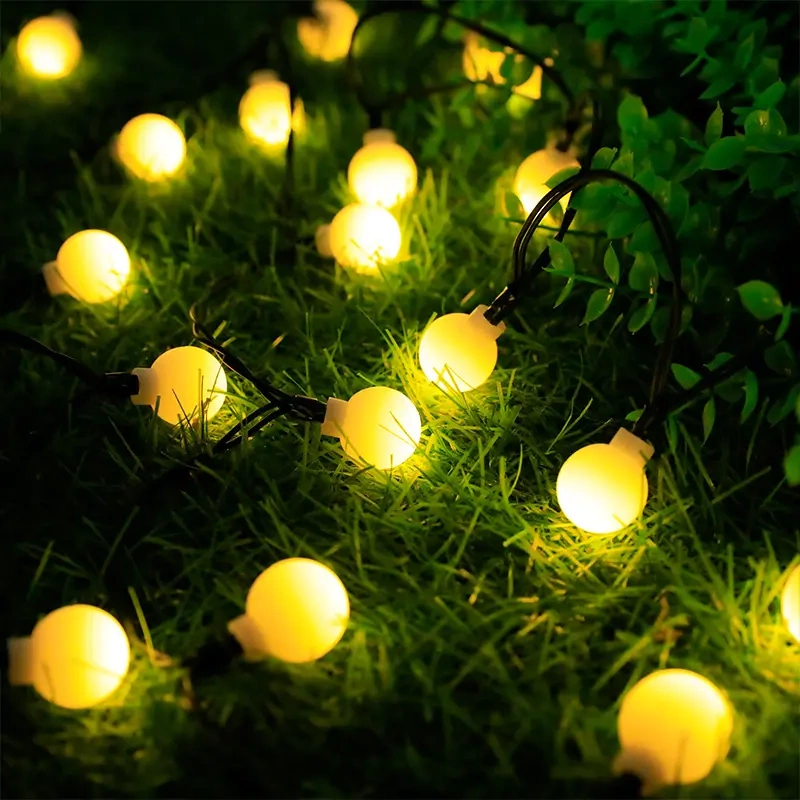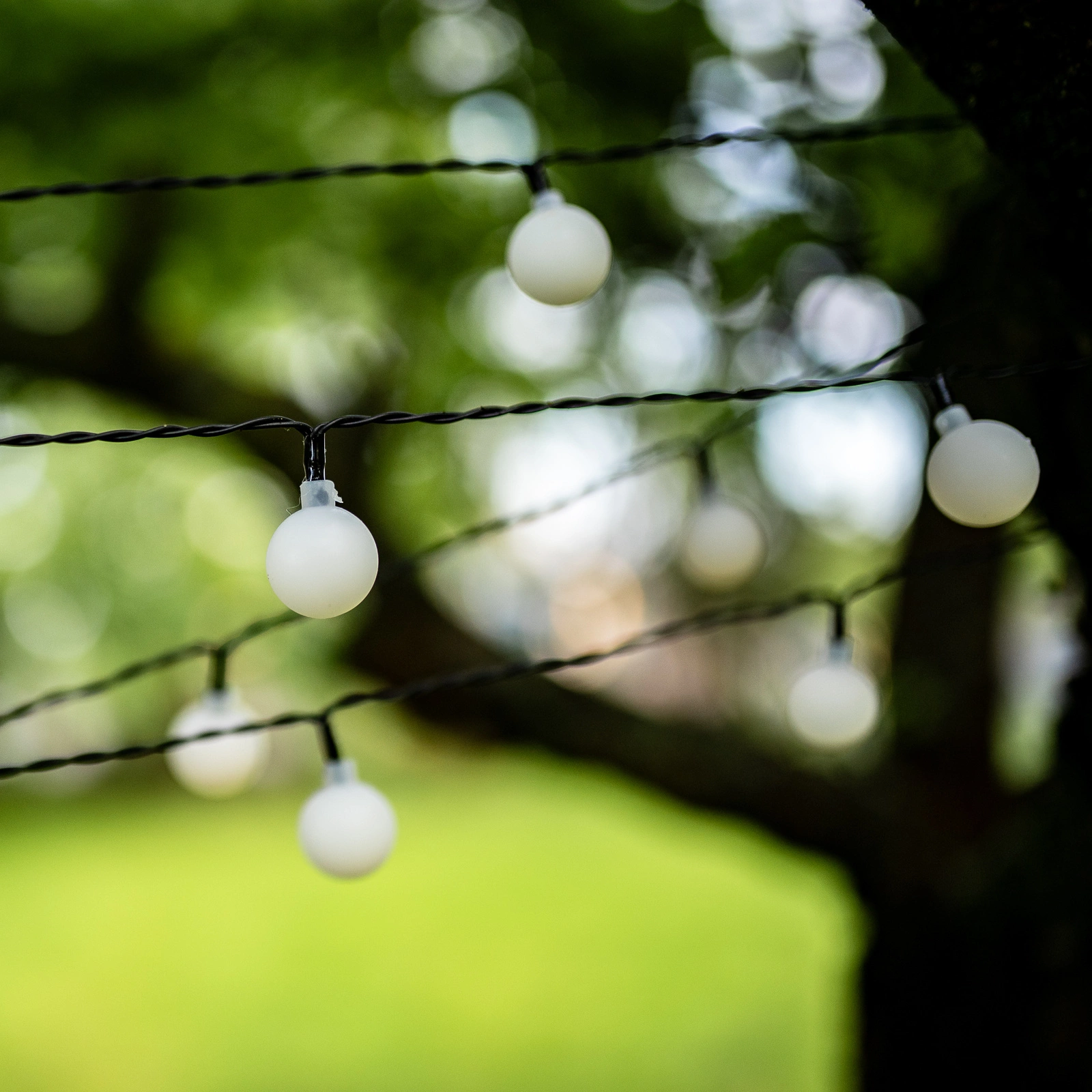 Die hier gezeigte SOLIX-Solargirlande besteht aus 50 warmweißen LEDs in Kunststoffkugeln mit einem Durchmesser von 2,3 cm, die das Licht sanft verbreiten und eine gemütliche und harmonische Atmosphäre schaffen. Sie ist ideal als subtile Beleuchtung für abendliche Zusammenkünfte und romantische Abendessen im Freien. Sie wurde im Hinblick auf maximalen Komfort entwickelt. Sie hat ein 182 cm langes schwarzes Kabel und die Lichter, die in Abständen von 15 cm angeordnet sind, sorgen für eine gleichmäßige Beleuchtung, die einen gleichmäßigen und eleganten visuellen Effekt erzeugt.