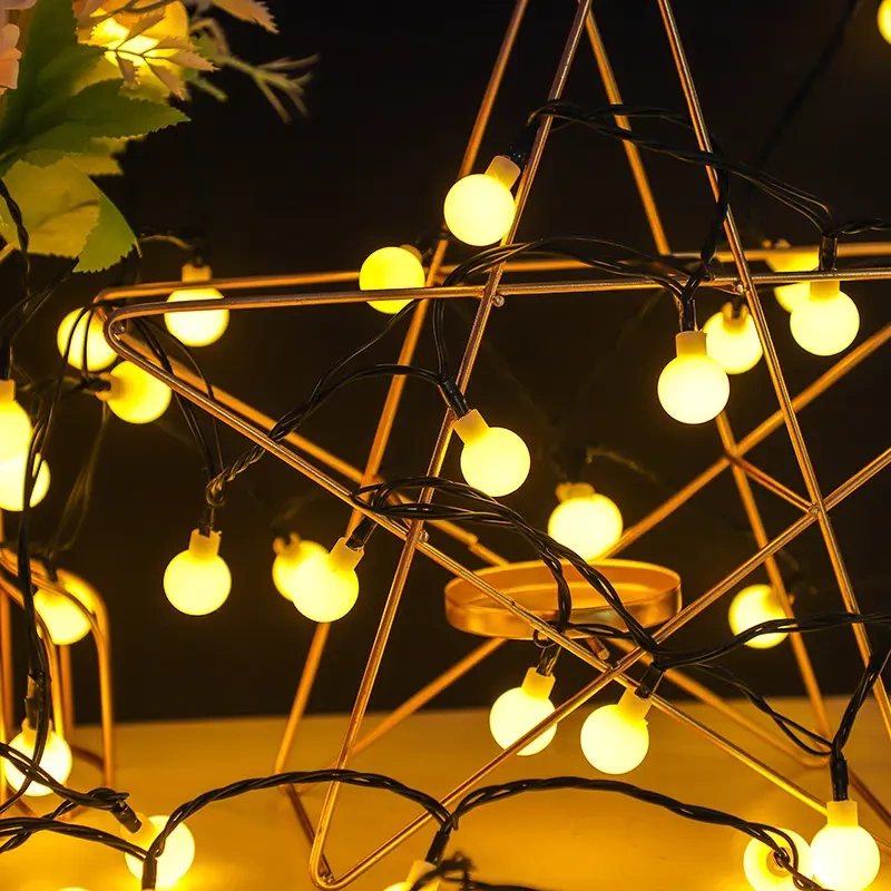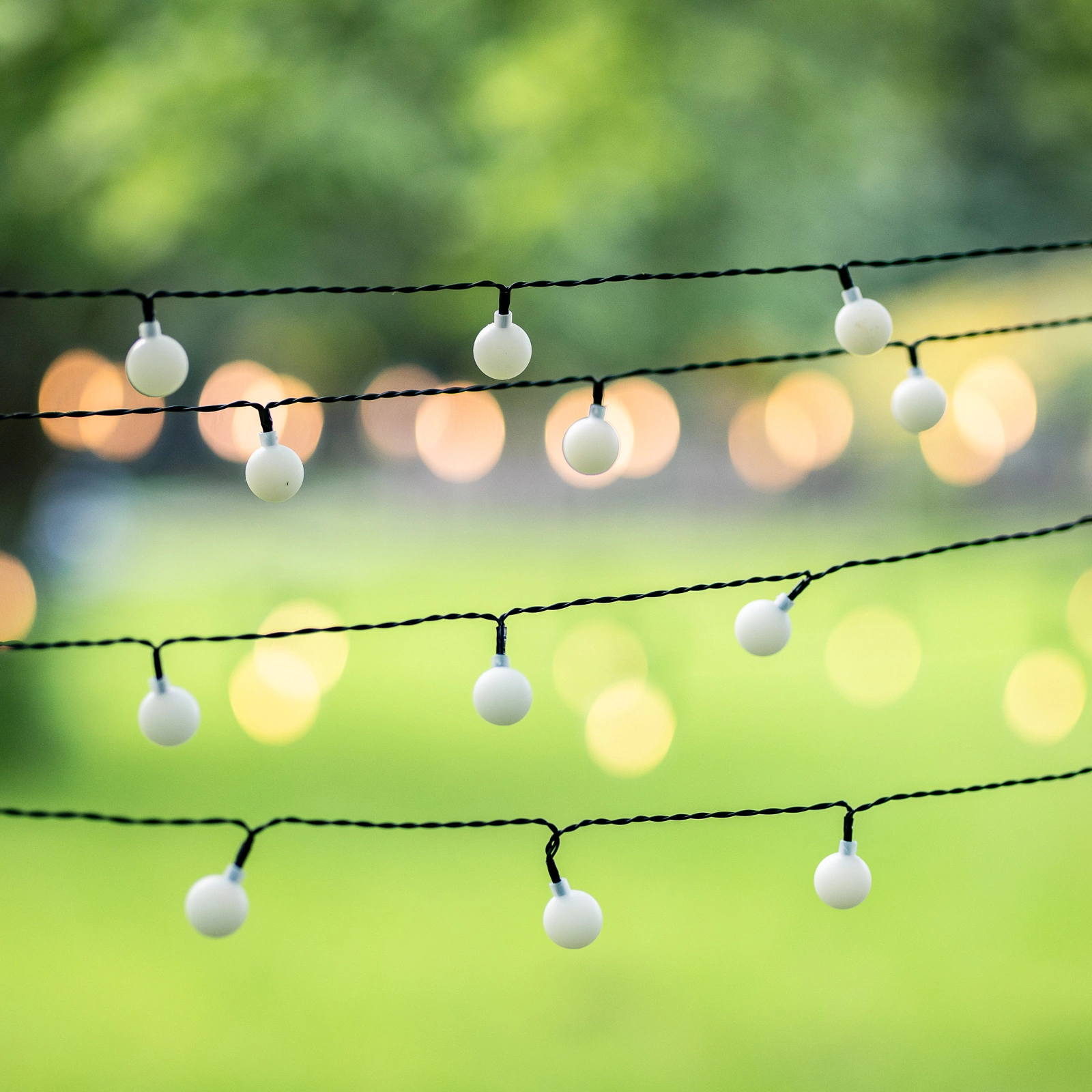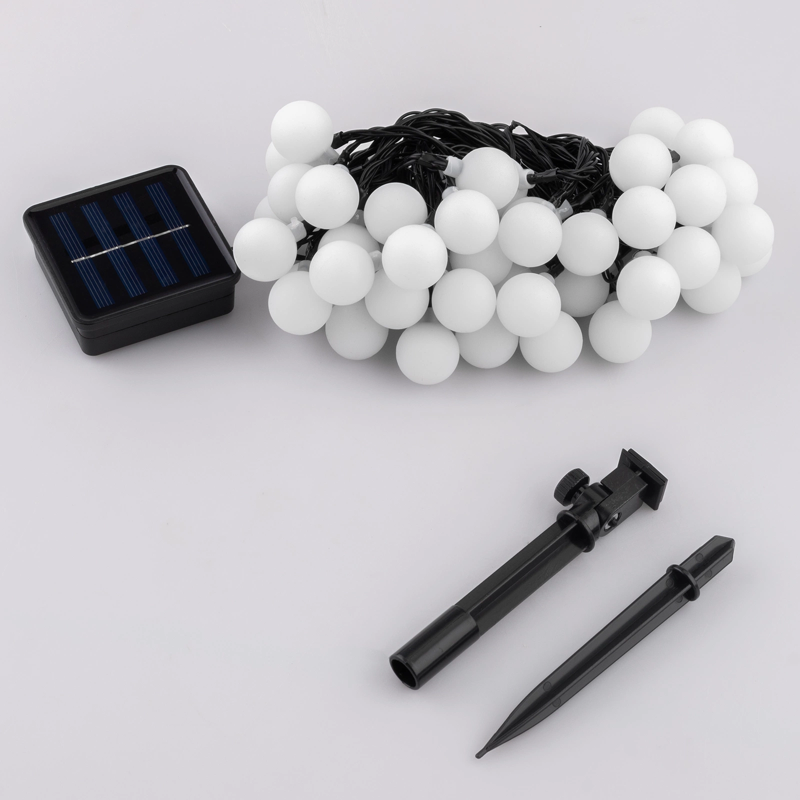 Die hier gezeigte SOLIX-Solargirlande besteht aus 50 warmweißen LEDs in Kunststoffkugeln mit einem Durchmesser von 2,3 cm, die das Licht sanft verbreiten und eine gemütliche und harmonische Atmosphäre schaffen. Sie ist ideal als subtile Beleuchtung für abendliche Zusammenkünfte und romantische Abendessen im Freien. Sie wurde im Hinblick auf maximalen Komfort entwickelt. Sie hat ein 182 cm langes schwarzes Kabel und die Lichter, die in Abständen von 15 cm angeordnet sind, sorgen für eine gleichmäßige Beleuchtung, die einen gleichmäßigen und eleganten visuellen Effekt erzeugt.