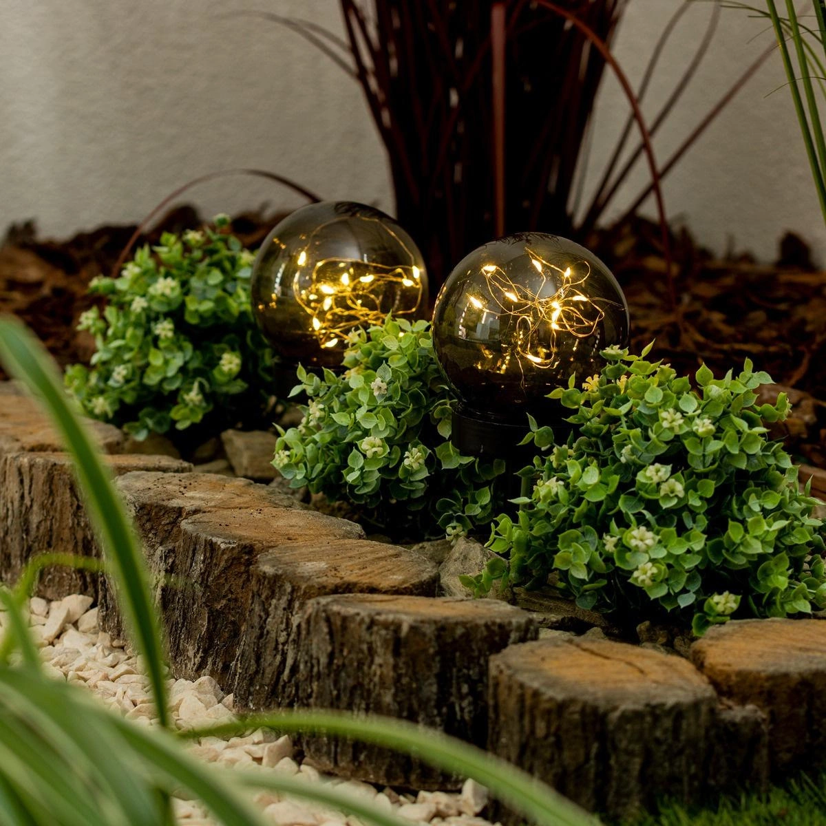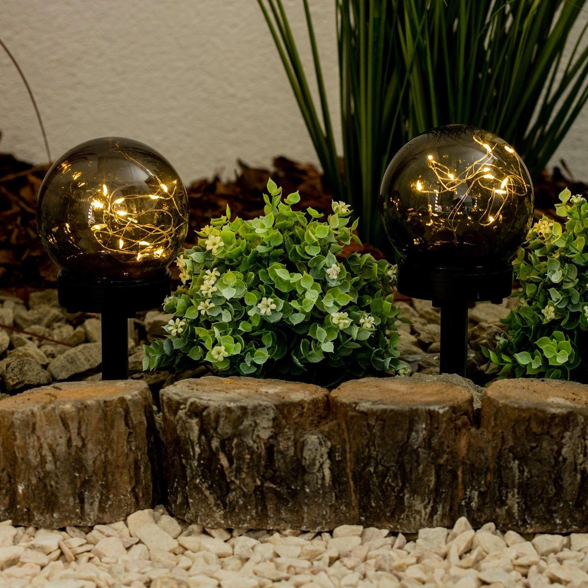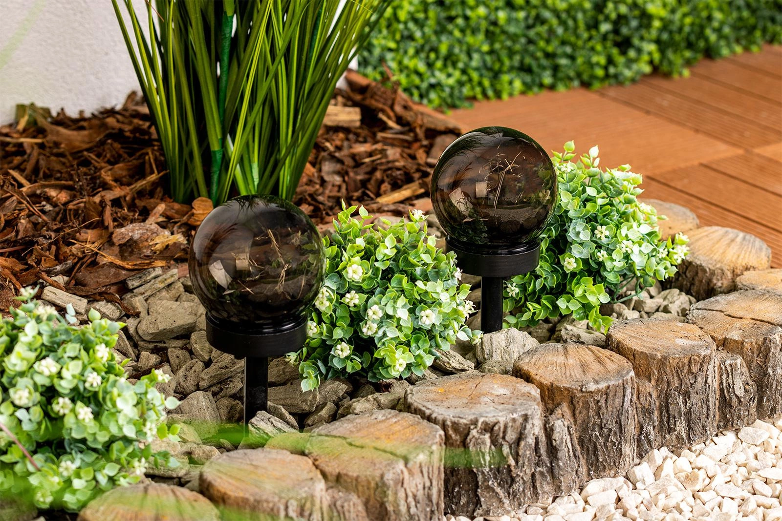 Die Solarlampe GLORIS der renommierten Beleuchtungsmarke LUMILED verleiht Ihrem Garten Eleganz und stimmungsvolle Beleuchtung. Der schlanke, schwarze Pfosten, der in den Boden eingelassen ist, bietet eine stabile Basis und verleiht der Leuchte einen modernen und stilvollen Touch. Die obere Struktur besteht aus einem runden, geräucherten Schirm, der die LEDs dezent zur Geltung bringt. Diese strahlen ein warmes, goldenes Licht mit einer Farbtemperatur von 3000 K aus, das den Eindruck von funkelnden Sternen in einer Glaskugel erweckt.