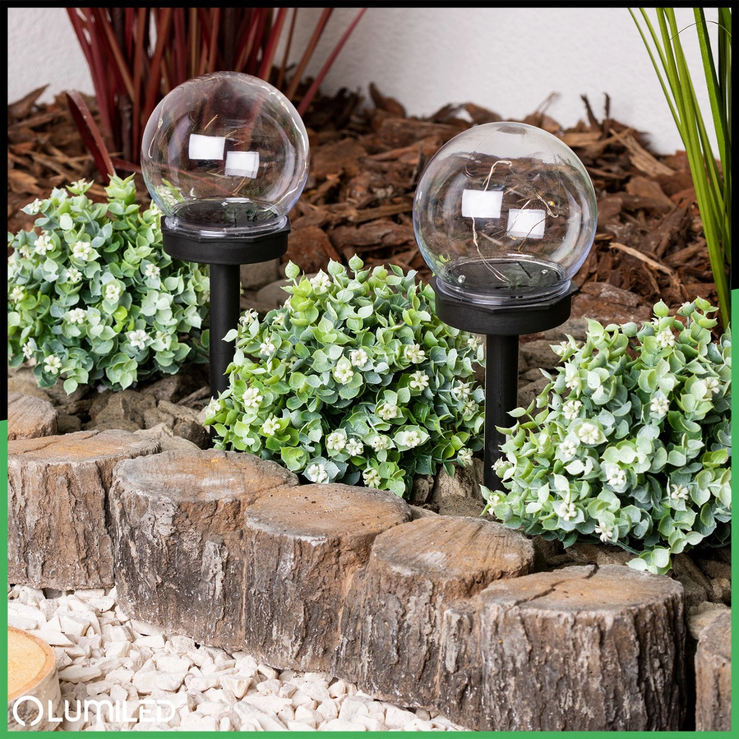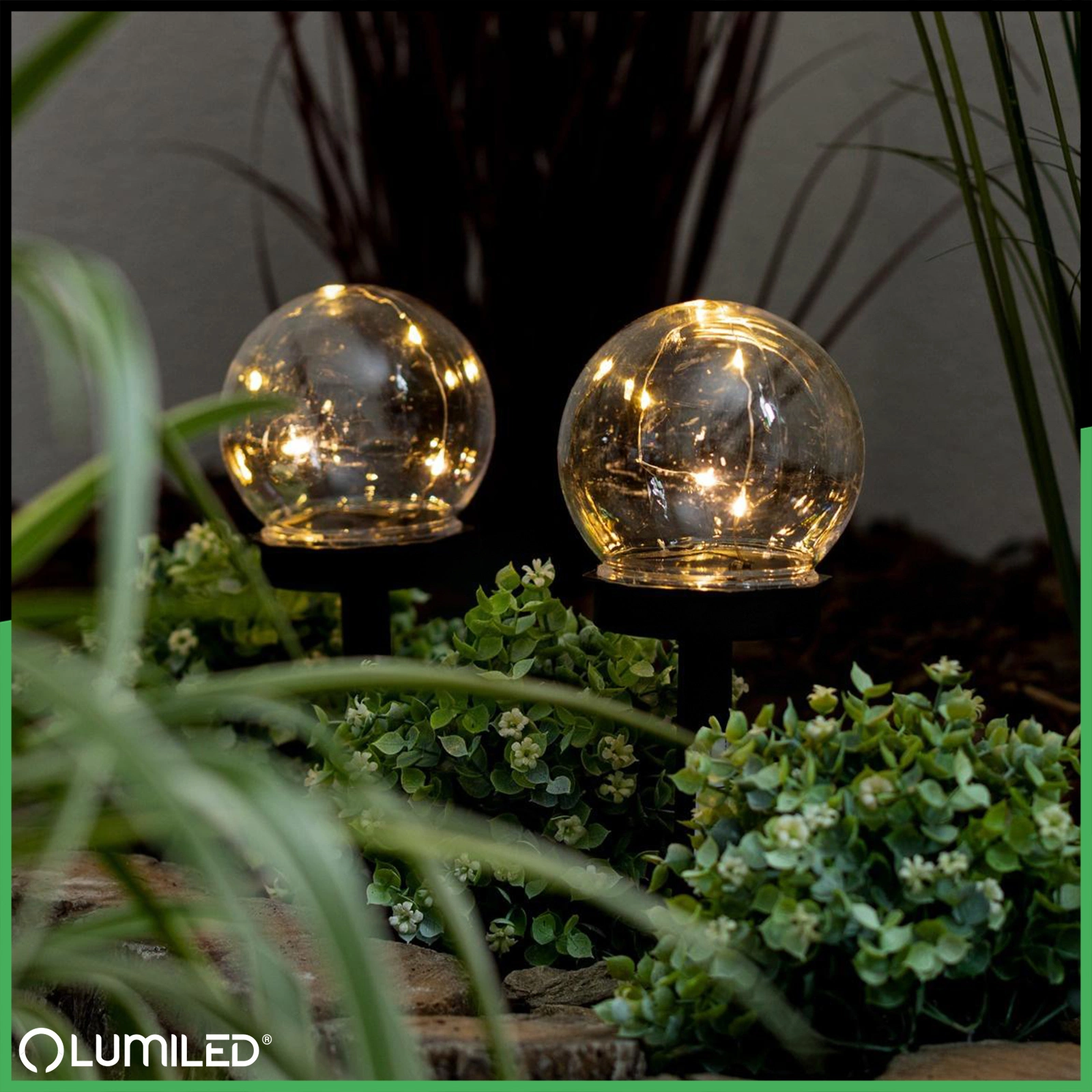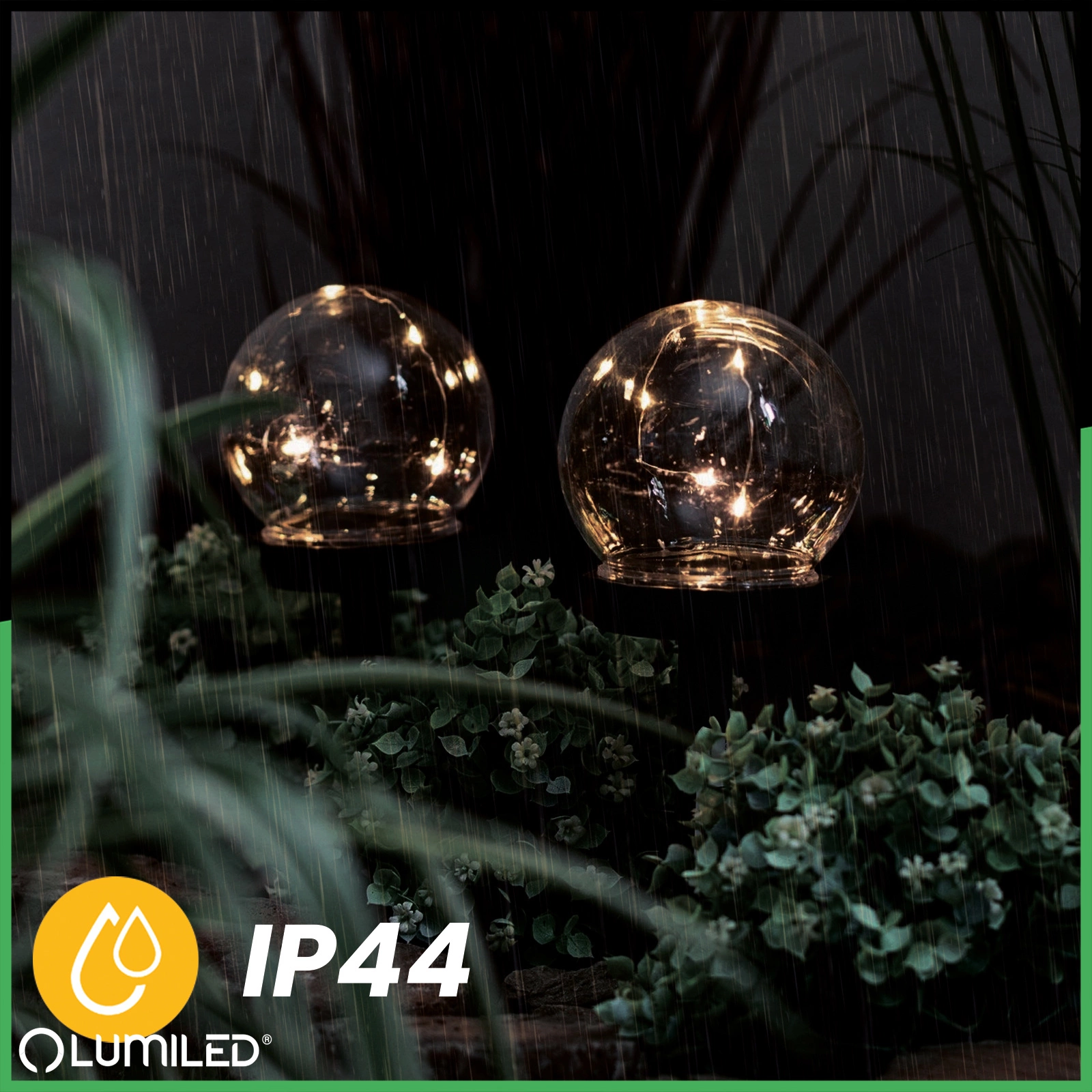 Die Solarlampe GLORIS der renommierten Beleuchtungsmarke LUMILED verleiht Ihrem Garten Eleganz und stimmungsvolle Beleuchtung. Der schlanke, schwarze Pfosten, der in den Boden eingelassen ist, bietet eine stabile Basis und verleiht der Leuchte einen modernen und stilvollen Touch. Die obere Struktur ist ein runder, transparenter Schirm, der die LEDs dezent in Szene setzt. Diese strahlen ein warmes, goldenes Licht mit einer Farbtemperatur von 3000 K aus, das den Effekt von funkelnden Sternen in einer Glaskugel erzeugt.