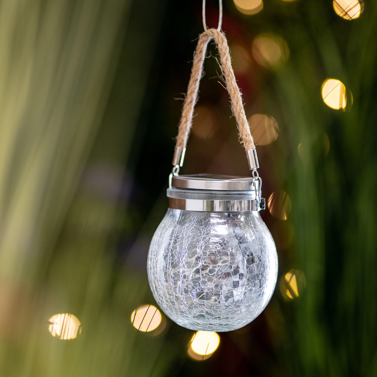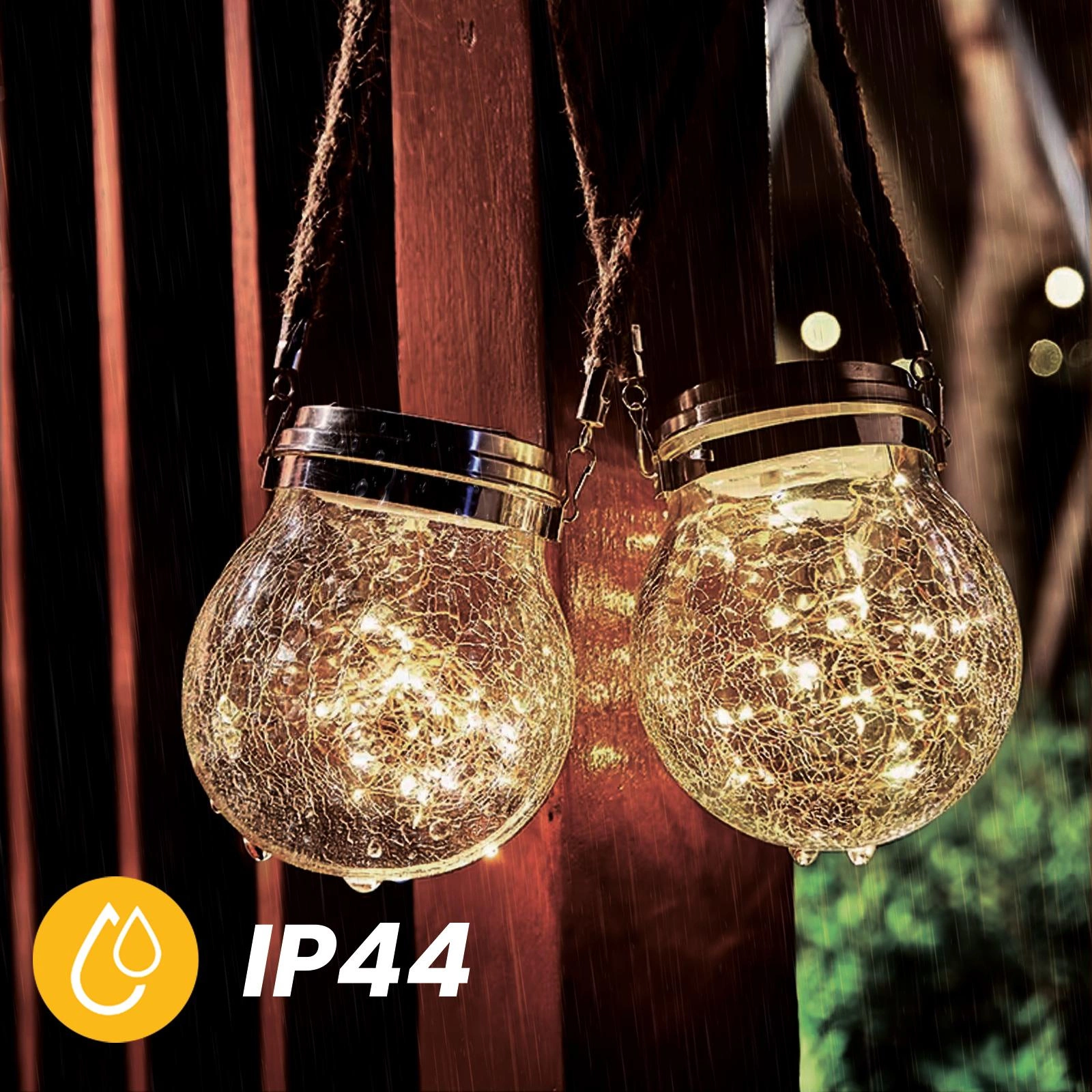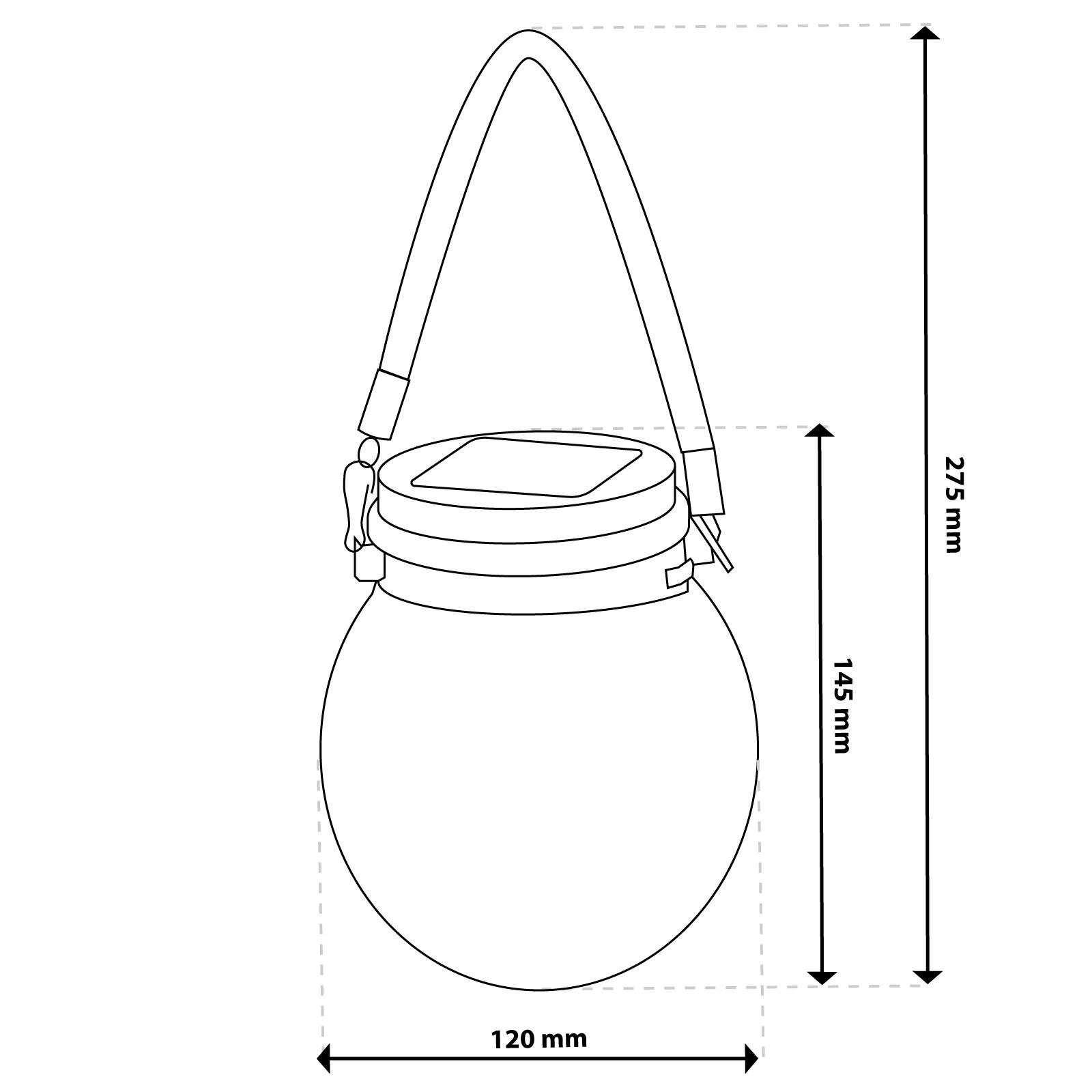 Die Solarlampe wurde mit Blick auf Komfort und Vielseitigkeit entwickelt. Dank des praktischen Griffs können Sie sie einfach überall aufhängen oder auf einen Tisch, eine Terrasse oder eine Fensterbank stellen, um eine einzigartige Atmosphäre zu schaffen. Die hohe Schutzart IP44 sorgt für Widerstandsfähigkeit gegen wechselnde Witterungsbedingungen und macht die Lampe ideal für den Einsatz im Garten und auf dem Balkon.