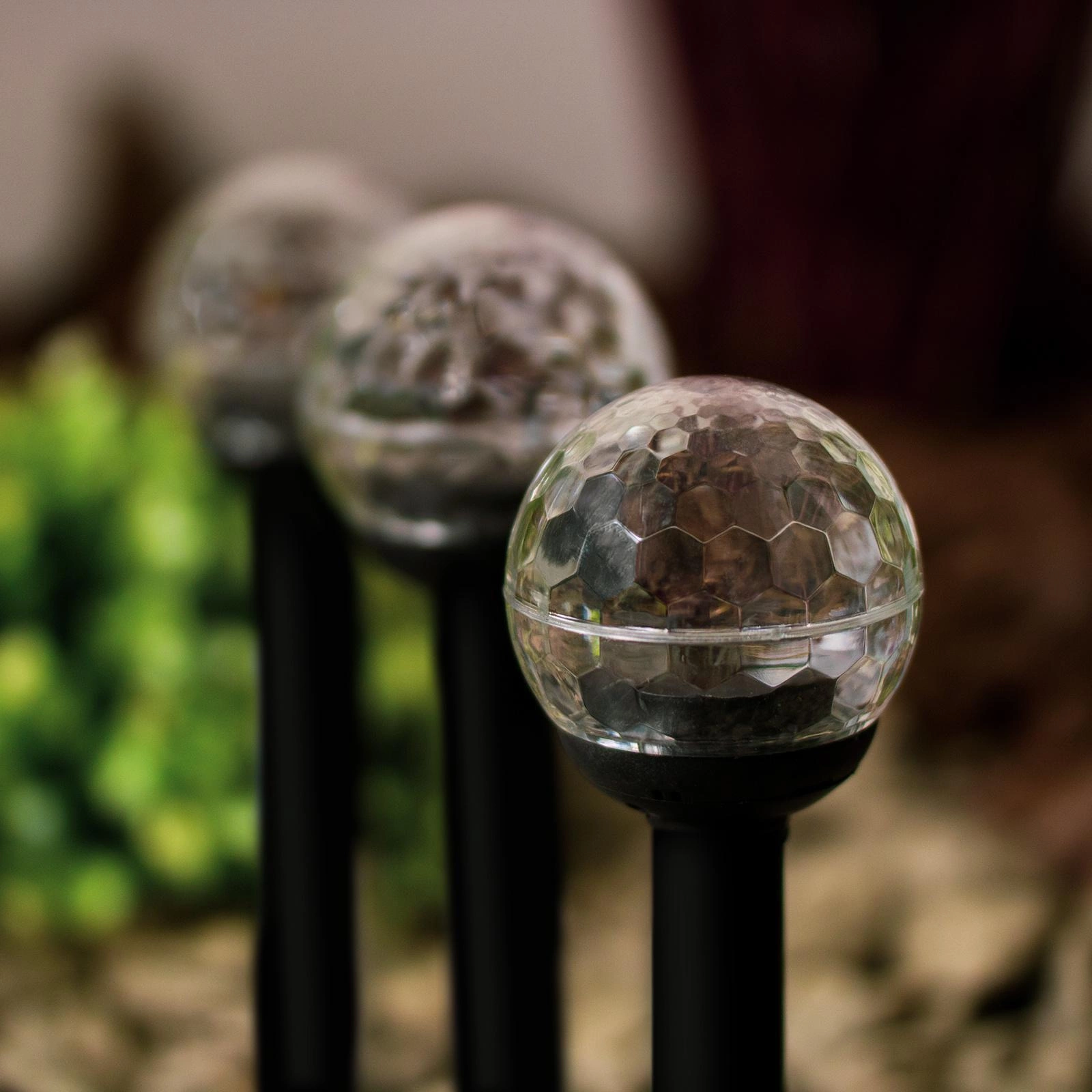 Die moderne Solarlampe mit mehrfarbigem Licht vereint eleganten Minimalismus und Zweckmäßigkeit. Ihr minimalistisches Design in eleganter schwarzer Spike-Farbe mit transparentem Schirm passt sowohl zu modernen als auch zu klassischen Gartenarrangements. Dank des eingebauten Solarpanels arbeitet das Gerät völlig autonom - schon wenige Stunden Beleuchtung reichen aus, um die Umgebung nach Einbruch der Dunkelheit dezent zu erhellen, ohne dass ein Stromanschluss erforderlich ist.