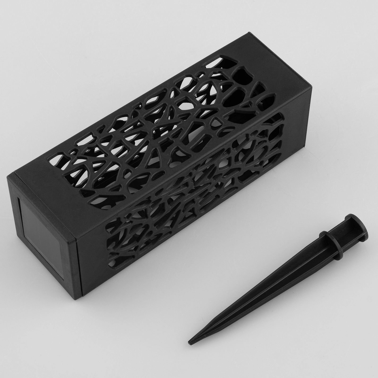 Der Spieß ermöglicht eine einfache und stabile Befestigung im Boden und verfügt über einen praktischen Ein- und Ausschalter, mit dem Sie die Beleuchtung manuell steuern können. Auf diese Weise können Sie einfach und schnell entscheiden, wann die Lampe leuchten soll, was den Benutzerkomfort erhöht und hilft, Energie zu sparen.