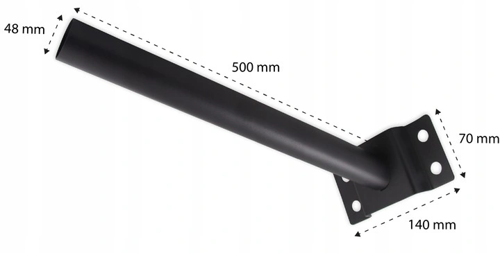 HÄNDE für eine SOLAR-Straßenlampe in der Farbe schwarz, hergestellt aus hochwertigem stahl mit einem Neigungswinkel von 35-40° und einer maximalen Tragfähigkeit von 20kg. Der Durchmesser des Rohrs beträgt 48mm. Das Set enthält befestigungsdübel für Beton.