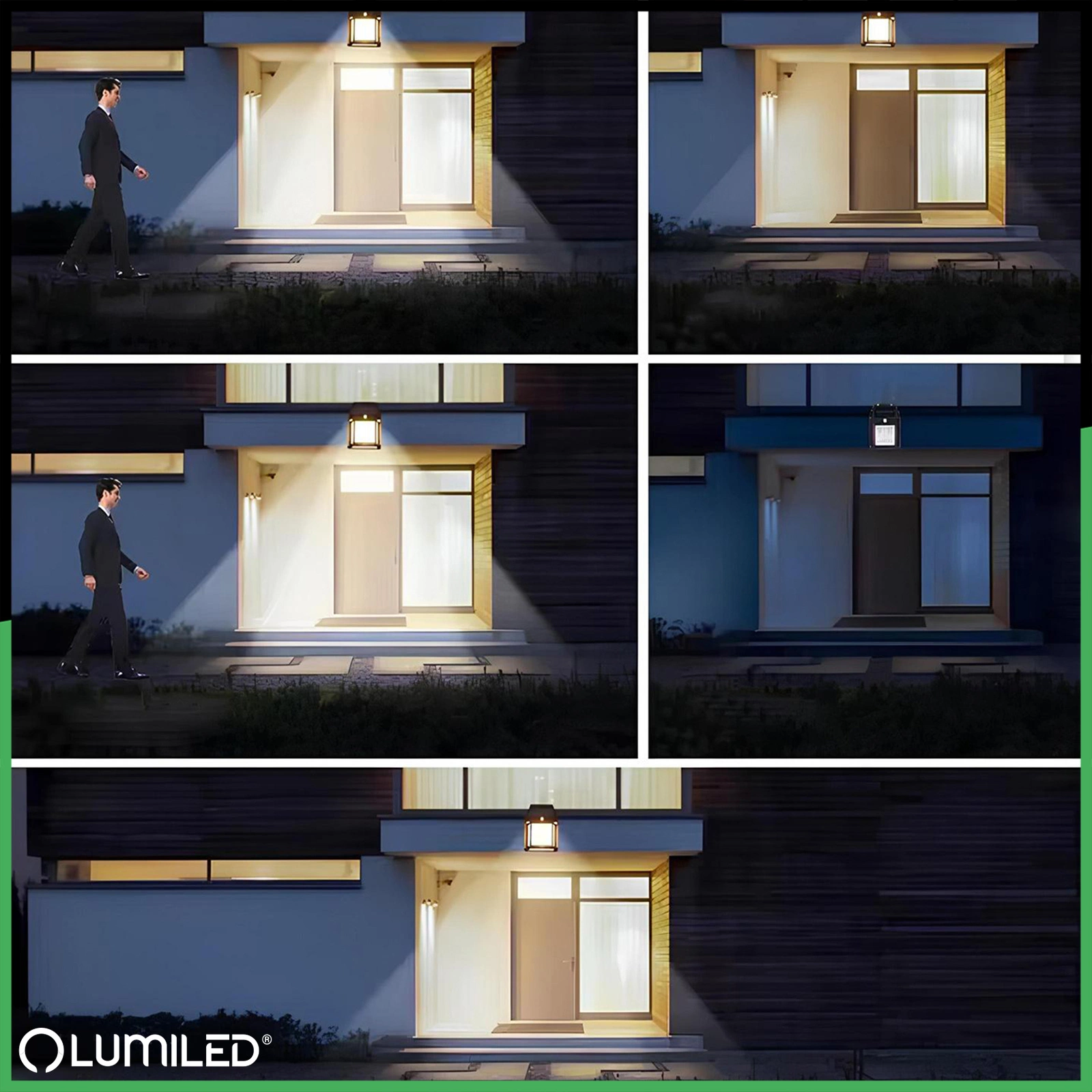 Die Wandleuchte ist mit einem integrierten Bewegungs- und Dämmerungssensor für einen intelligenten und energiesparenden Betrieb ausgestattet. Der Dämmerungssensor schaltet die Leuchte bei Einbruch der Dunkelheit automatisch ein, und der Bewegungssensor aktiviert das Licht nur, wenn er eine Bewegung in der Nähe erkennt. So wird sichergestellt, dass die Leuchte nur dann eingeschaltet wird, wenn es notwendig ist, was den Benutzerkomfort, die Sicherheit und die Energieeinsparung erhöht.