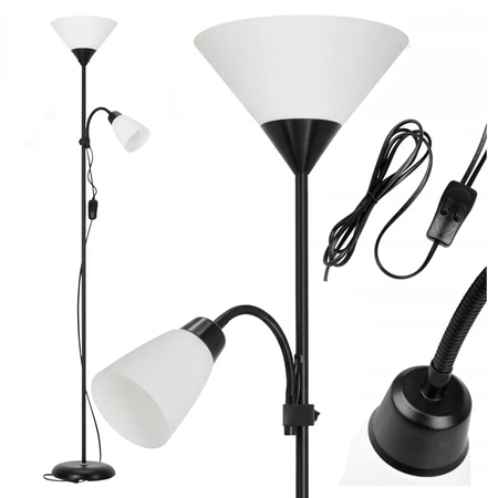Die 2-Punkt-Stehleuchte ist eine praktische und elegante Leuchte für das Wohnzimmer, Schlafzimmer oder Büro. Sie verfügt über zwei unabhängige Steckdosen - 1xE27 für allgemeines Licht und 1xE14 an einem flexiblen Arm, mit dem Sie das Licht präzise nach oben, unten oder in eine beliebige Richtung richten können, ideal zum Lesen oder Arbeiten. Dank der separaten Schalter am Netzkabel kann jede Lichtquelle separat eingeschaltet werden, um die Beleuchtung an Ihre aktuellen Bedürfnisse anzupassen. Die Höhe der Leuchte kann dank der Konstruktion aus fünf Modulen von je 33 cm angepasst werden - für eine niedrigere Form einfach die ausgewählten Elemente entfernen. Das lange Kabel von 1,2 m macht es einfach, die Leuchte überall im Raum zu platzieren. Die Leuchte wird ohne Leuchtmittel verkauft, was Ihnen die Freiheit gibt, die Wattstärke und Farbe der Glühbirnen zu wählen und so in jeder Umgebung die perfekte Stimmung zu schaffen.