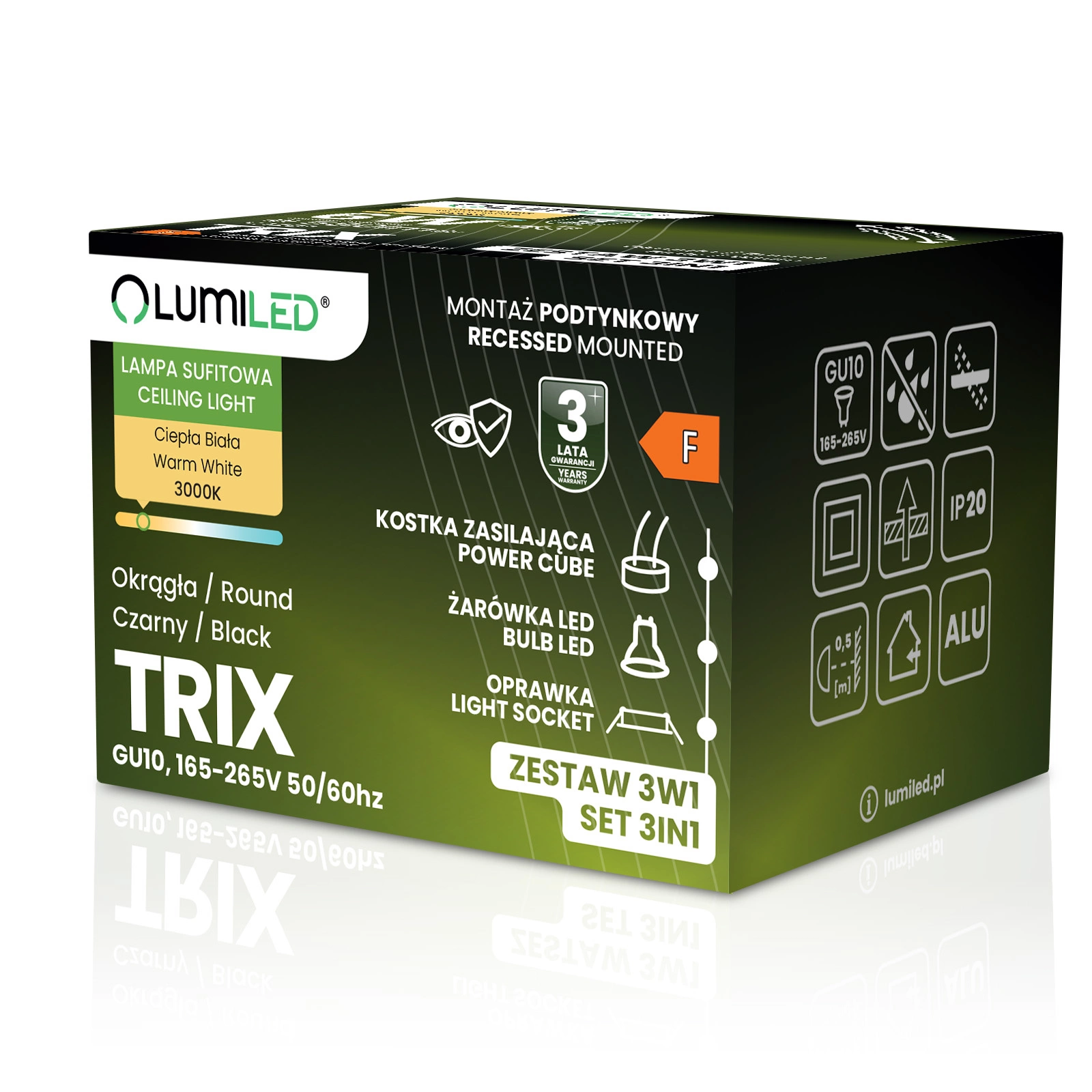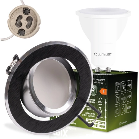 Die Lumiled TRIX runde Deckenleuchte in Schwarz ist eine 3-in-1-Komplettlösung - das Kit enthält eine Einbauleuchte, eine GU10 6W LED-Lampe und einen Montageblock. Damit ist das Produkt sofort einbaufertig und erfordert keine zusätzlichen Anschaffungen. Die warme Lichtfarbe von 3000K schafft eine angenehme Atmosphäre, die zur Entspannung beiträgt, und die verstellbare Fassung ermöglicht es, das Licht auf die gewünschten Bereiche zu richten. Es handelt sich um eine vielseitige Beleuchtung, die Funktionalität und Ästhetik in einem einzigen Produkt vereint.