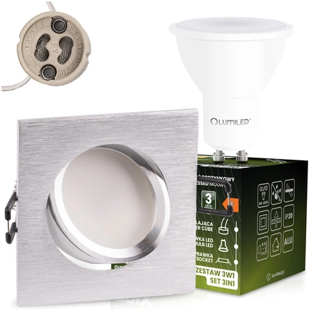 TRIX 3in1 GU10 6W 4000K Gebürstetes Silber LUMILED quadratische Halogen-Einbauleuchte