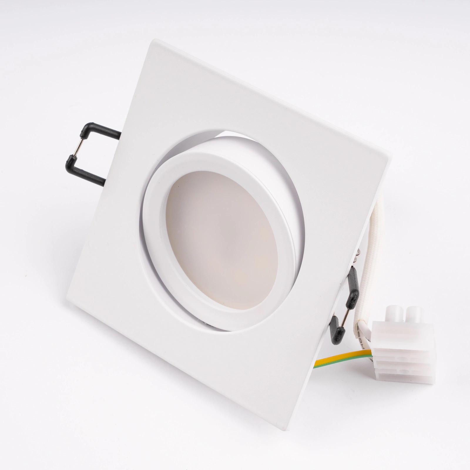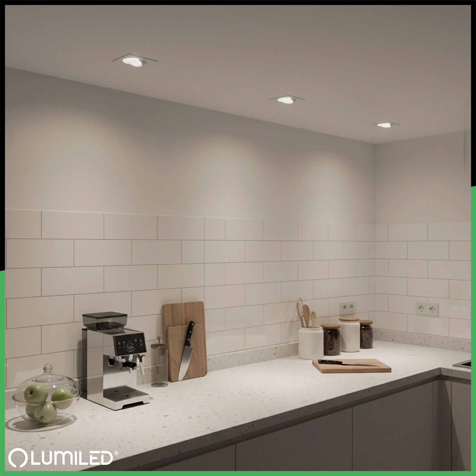 Die Lumiled TRIX quadratische Deckenleuchte in mattem Weiß ist eine komplette 3-in-1-Lösung - eine Einbauleuchte, eine GU10 6W LED-Lampe und ein Montageblock sind im Lieferumfang enthalten. Die neutrale Lichtfarbe von 4000K bietet eine natürliche und angenehme Beleuchtung für Konzentration und tägliche Aktivitäten, während die verstellbare Halterung es ermöglicht, das Licht auf die gewünschten Bereiche zu richten. Dies ist eine vielseitige Beleuchtung, die Funktionalität und Ästhetik in einem einzigen Produkt vereint.