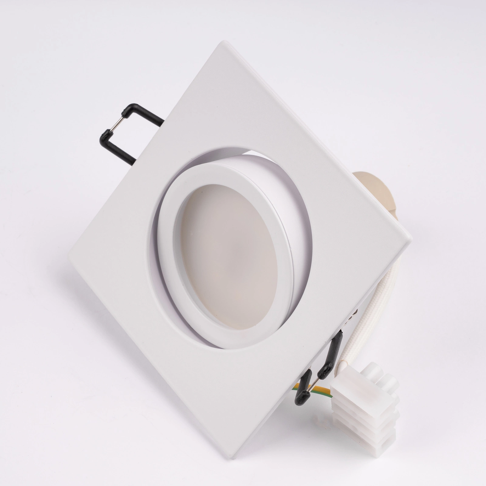 Ein einbaufertiges Set - die Einbauleuchte mit beweglichem Rahmen, Montageblock und GU10 6W LED-Glühlampe bildet ein Set, das Sie sofort verwenden können. Die Montage ist schnell und einfach, und Sie erhalten sofort eine funktionelle und ästhetische Beleuchtung, ohne zusätzliche Komponenten kaufen zu müssen. Eine praktische Lösung, die Ihnen Zeit spart und Bequemlichkeit garantiert.
