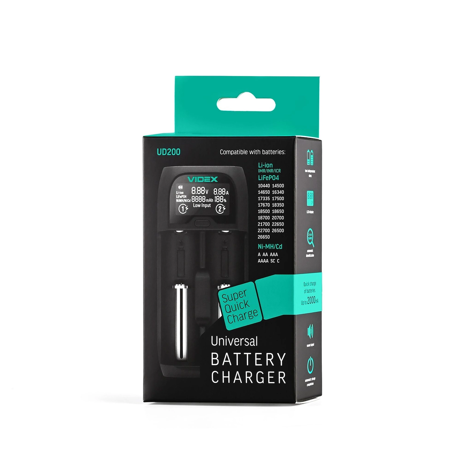 Das VIDEX VCH-UD200 Universal-Ladegerät - eine zuverlässige Lösung für Ihre Batterien. Dieses kompakte und vielseitige Ladegerät ermöglicht ein schnelles und effizientes Aufladen verschiedener Arten von Lithium-Eisen-Phosphat-Batterien. Mit einer Ausgangsleistung von 4,2 V und einem Strom von 2 A sind Ihre Akkus immer einsatzbereit. Die moderne Ladetechnik in Verbindung mit der robusten ABS-Kunststoff-Konstruktion garantiert Langlebigkeit und sichere Anwendung.