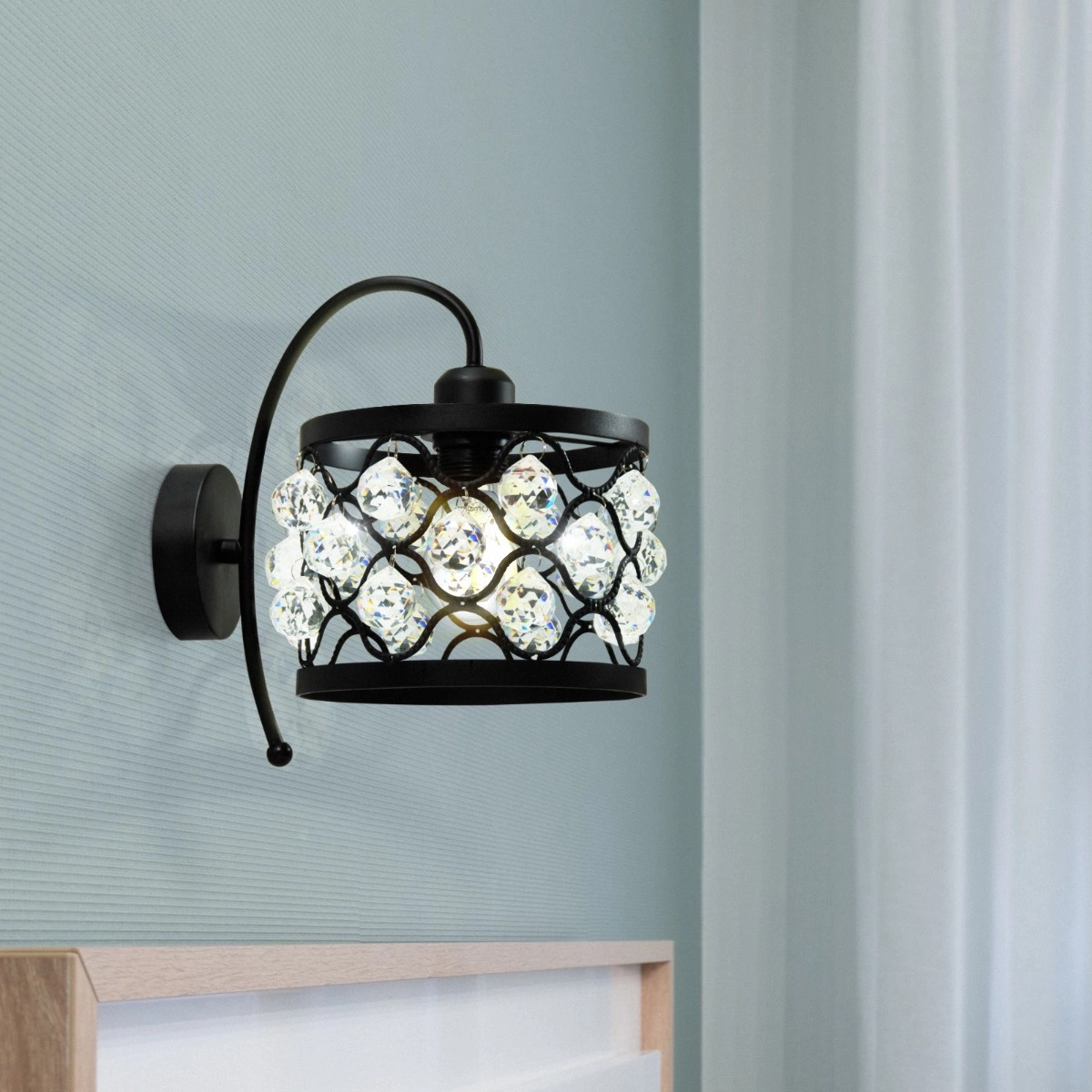 Die VEJLE Wand- und Wandleuchte hat eine äußerst dekorative, elegante Form. Seine schwarze Metallstruktur ist mit Glastropfen verziert. Es sieht in modernen Innenräumen mit schwarzen Details großartig aus. Es kann eine interessante Abwechslung zum strengen Interieur im Loft-Stil sein. Es passt auch zu Retro-inspirierten Arrangements. Es wurde mit viel Liebe zum Detail aus hochwertigem Stahl und wunderschön geschliffenem Glas gefertigt, das tagsüber wunderschön funkelt. Abends ermöglicht die Lampe einen außergewöhnlichen Lichtstreueffekt. Sie eignet sich nicht nur für das Wohnzimmer, sondern auch als Tischbeleuchtung im Esszimmer.